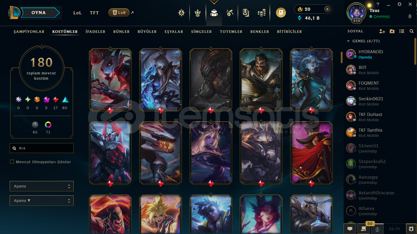 Hesap kendimin olup tamamen kişisel hesabımdır.Mail ve herşey birlikte verilecektir.Güvenle oynayıp kasabilirsiniz.Resimlerde görüleceği üzere orta derece doluluktadır.Hesabın içindeki lol kostümlerin hepsini koyamadım,detaylı bilgi için yazabilrisiniz.Valorant hesabıyla aynı kullanıcı adı ve şifre kullanır.Tek hesaptır.