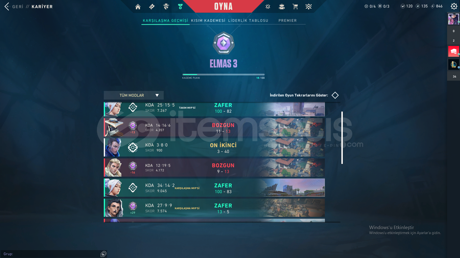 Lolde peak master, valorantta peak immortal çar