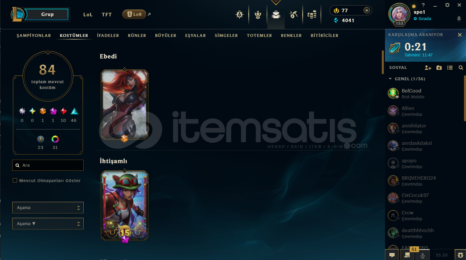 LoL de peak master görmüş şu anda elmas2, valorantta ise ep8 de immortal görmüş şuan da elmas 3 olan hesabımı paraya sıkıştığım için satıyorum. eposta adresi ile vereceğim.Valoranttaanomali ghostyağmacı şerifulupençe ve neptün vandalseri tetik ve sır çiçeği phantom ve bir kaç bitirilmemiş battle pass skinleri bulunuyor.Teslimat süres...