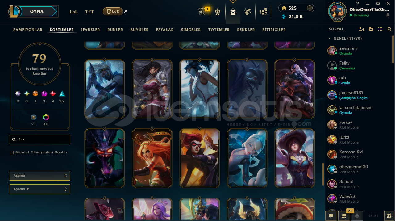 276 lvl 79 skınlı maılı ıle verılecek hesap