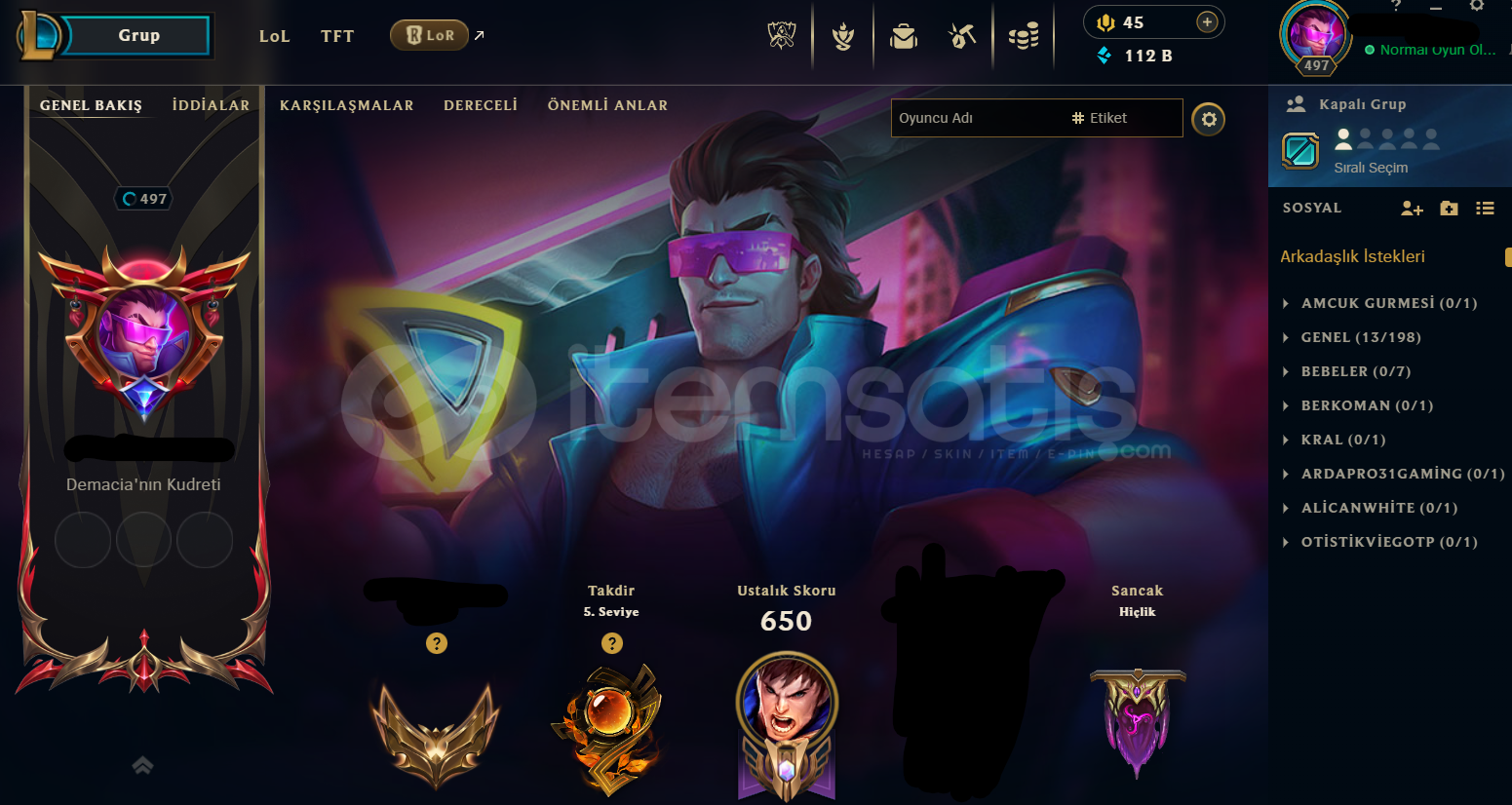 Hesap şahsıma ait olup ilk maili vardır hesap dolu denecek kadar kostüm içerir hiçbir ban yememiş olup tftsi bile doludur clash kupası vardır .Not:Fiyata aldanmayın Teklif yapabilirsiniz.
