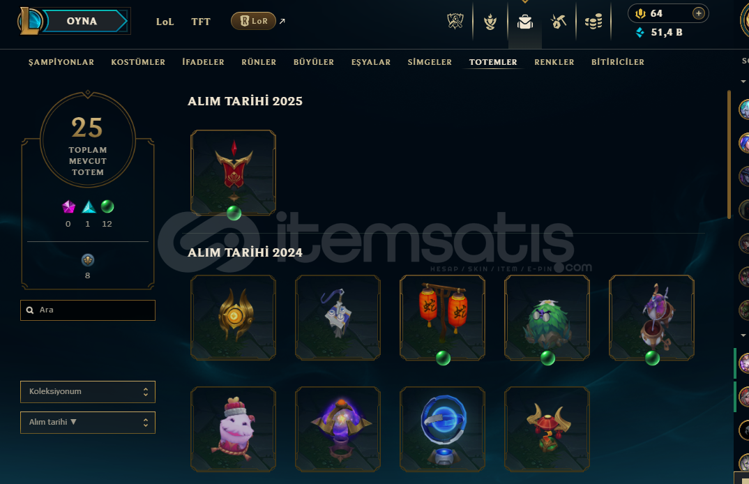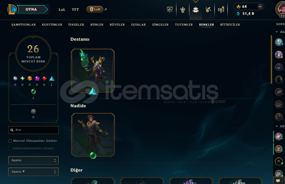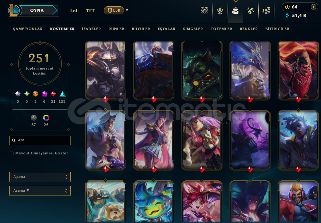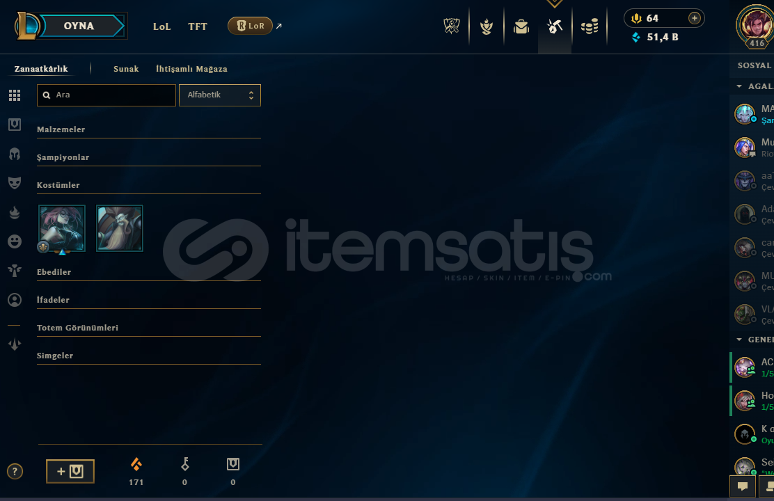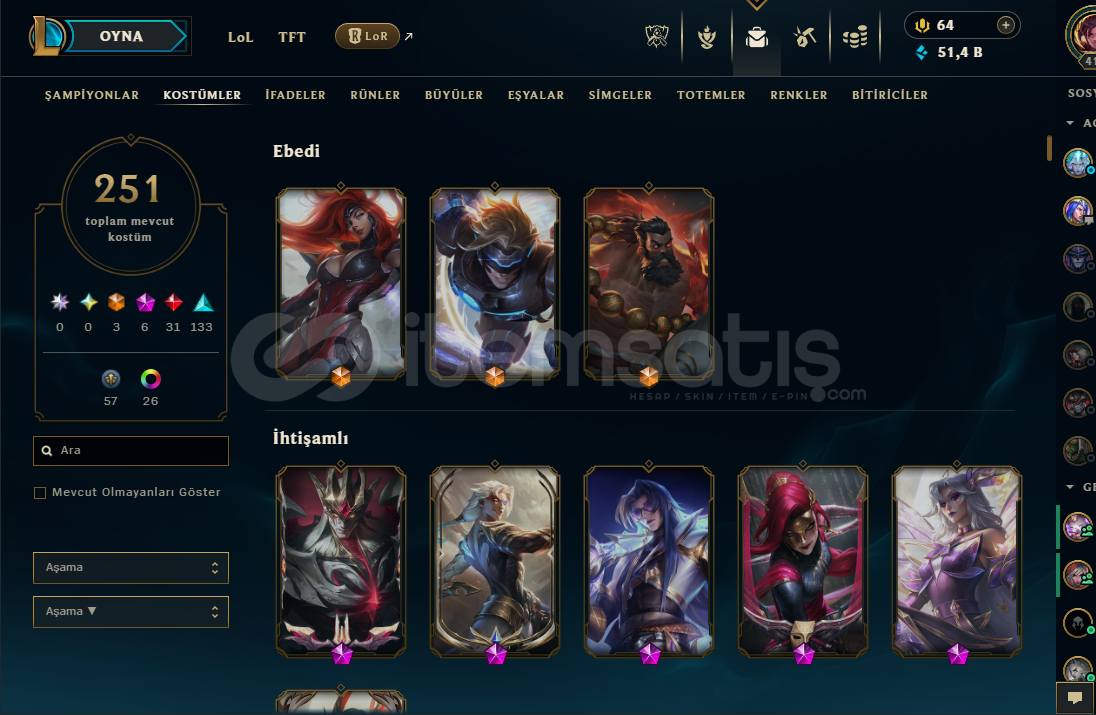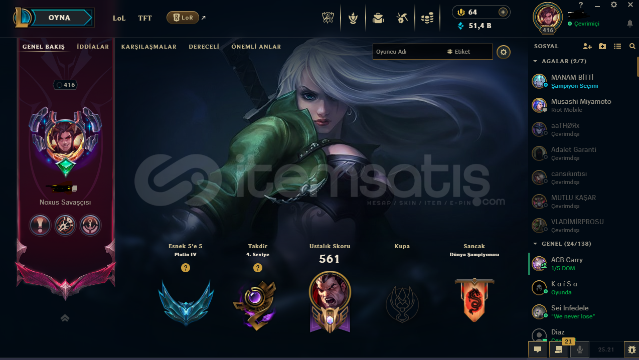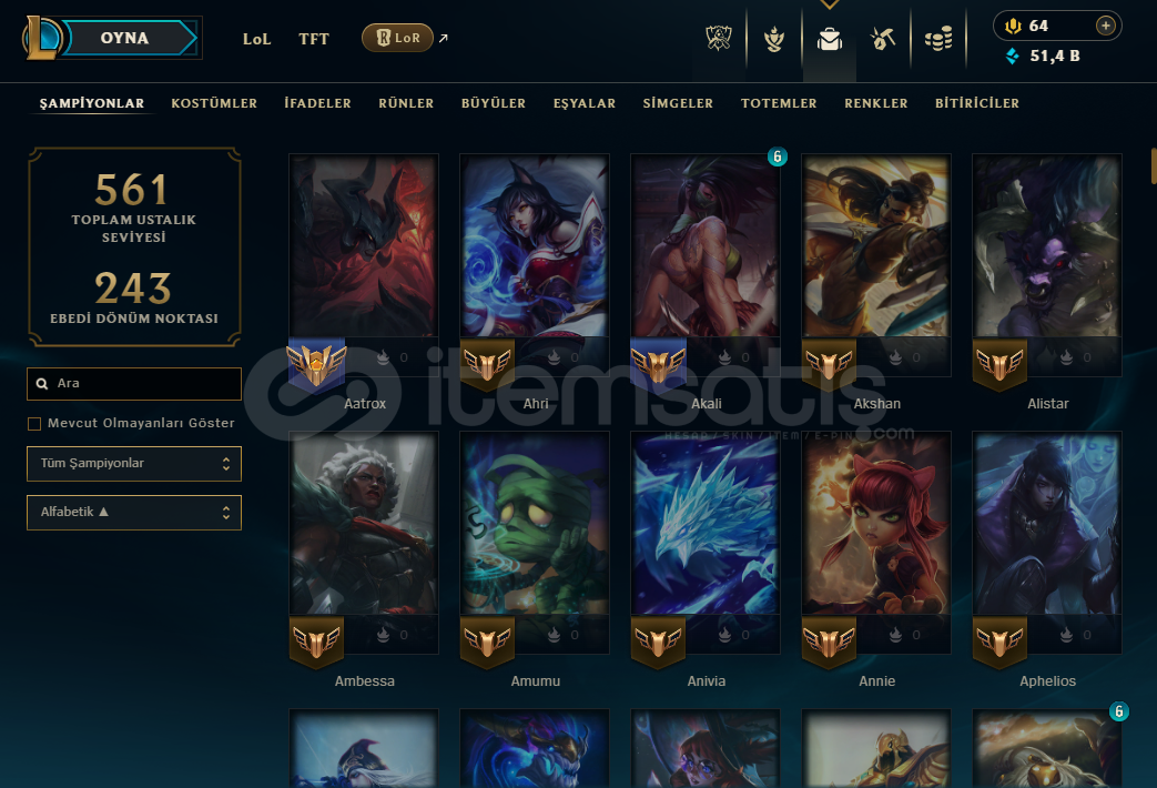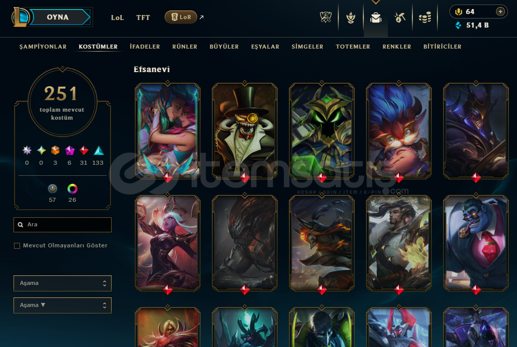 MAİNLEMELİK VİP TR LOL HESAP 200+KOSTÜM