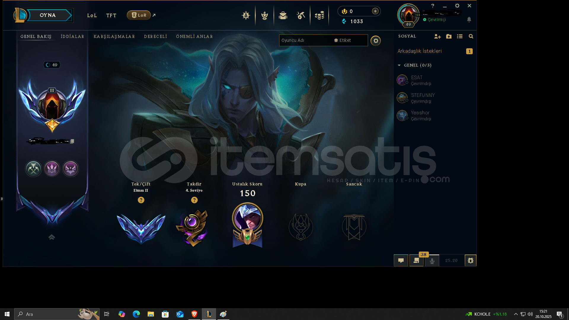 master 200 lp erime d2 hesap 10 12 gidiyor 28 30 geliyor max 10 maça master olur hesap maili ile beraber verilecektir tabiki defiyatına göre bedava hesaptır lütfen absürt indirim istemeyin.