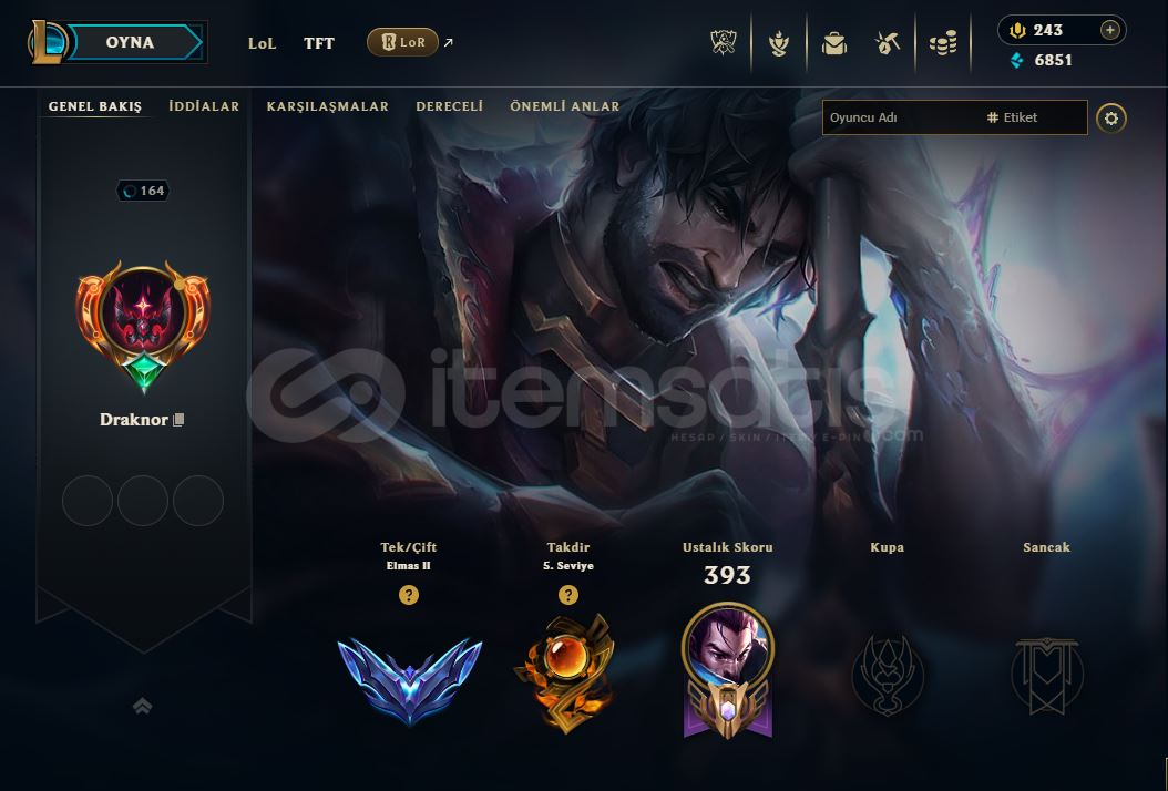 Hesap güncel olarak D2 71 LP. Hesabı master elo 200 lp yaptım ve bir süre bıraktım. Şimdi de geri kasıyorum. Mümkünse hesabı master olarak teslim edeceğim. ÖNEMLİ BİLGİ: Mail değişimi yapılacaktır sormanıza gerek yok çünkü hesabı satın alıyorsunuz hesap sizin olacak!!.