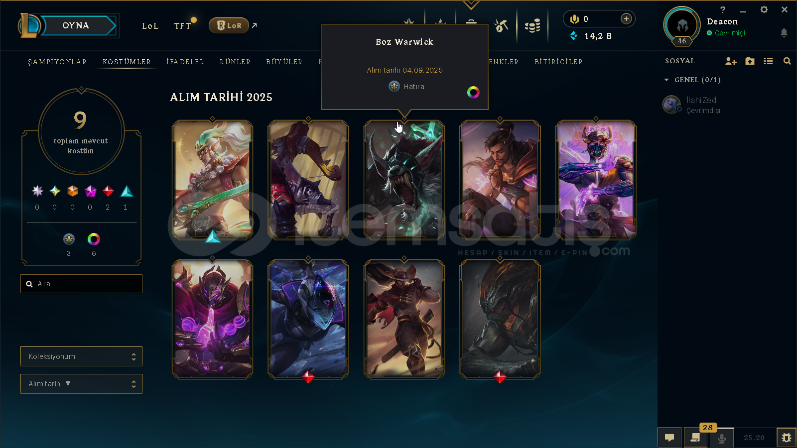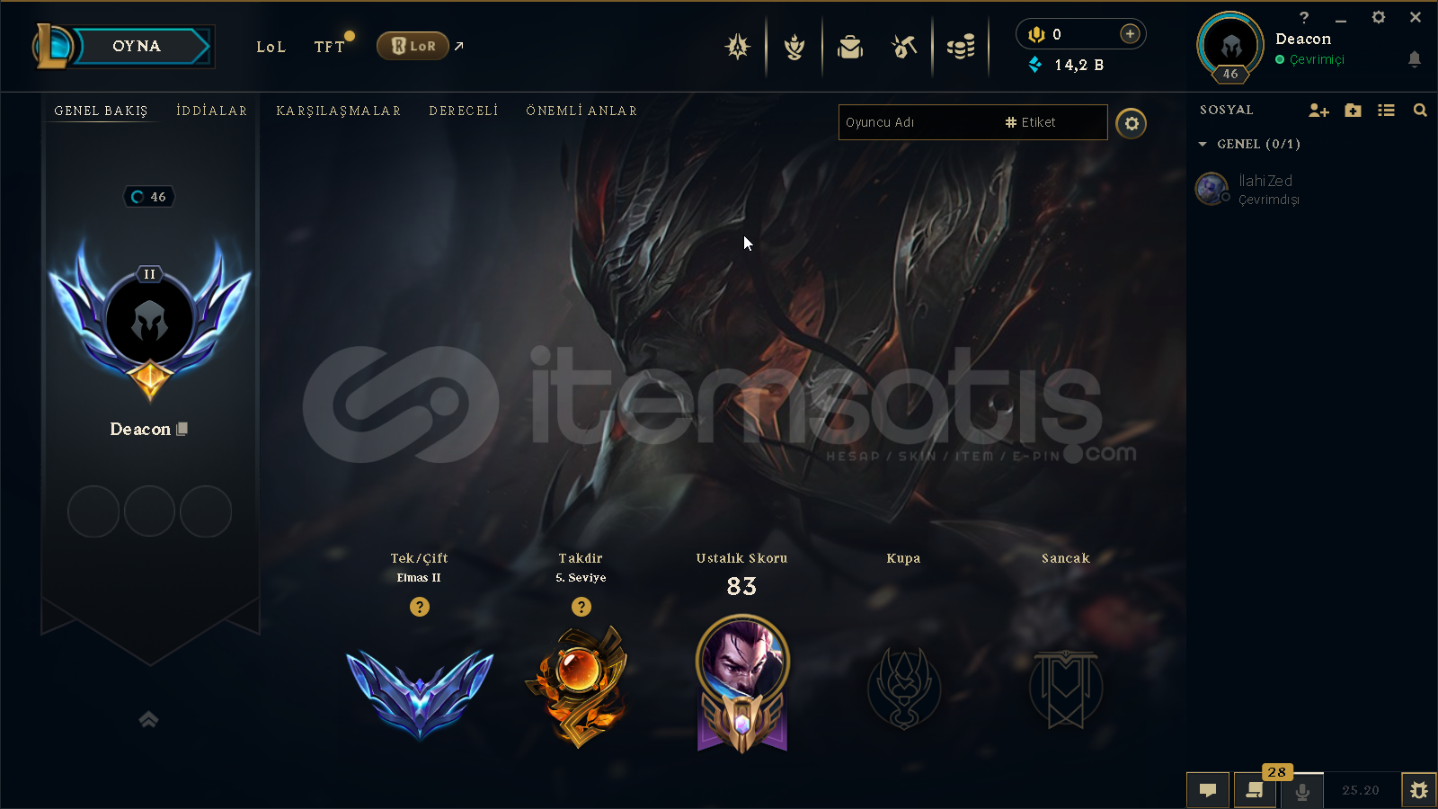 merhaba hesap masterdan erıme elmas 2 33 lp yüksek lp gaini var kaybedınce az gider 10 kostum var 2.5k turuncu öz vardır sampıyon her lane 20 30 tane sampıyon var baya fazla ekstra mavı oz de var hesap güzel otomatık teslımat maıl degısımı olucaktır wr 55