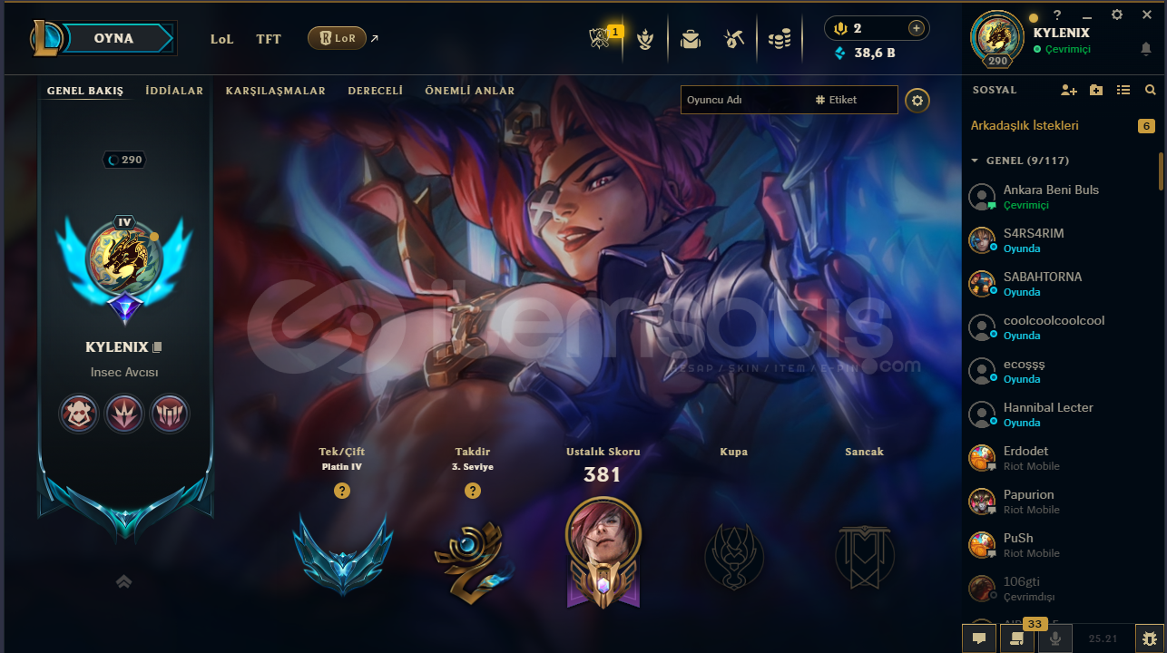 *MMR İYİ SOLOQ 28 GELİYOR 20 GİDİYOR PLAT 4*Toplam 113 kostüm var* 71 destansı *17 Efsanevi*2 ihtişamlı*1 Ebedi (Ruh dovuscusu samira)Valorant hesabında*3 vandal Asil/Delipop/Sihirpunk*1 operator Valiant Hero*1 phantom Yağmacı*1 ghost Fatih*1 Sheriff Seritetik *Özel harekat kelebek *2 kere battlepass alındı *Peak Plat