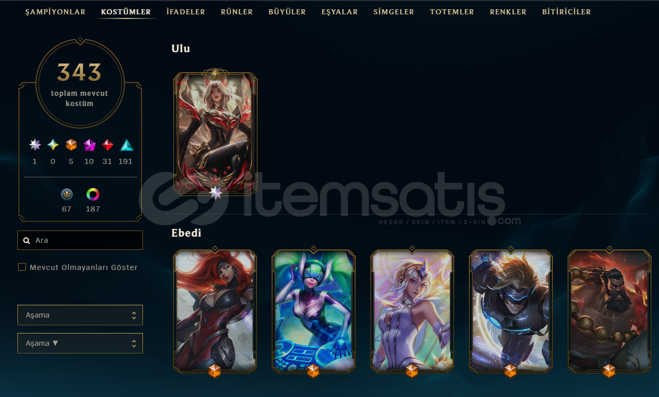 Ölümsüz Efsane Ahri - Ulu Kostümlü hesapHesap 536 LVL 101 B mavi öz 334 Kostüm (Ebedi, İhtişamlı, Efsanevi ve Destansı kostümleri ilan resimlerinde bulabilirsiniz)370 ifade409 simge190 renkpazarlık cüzi olsa da vardır.sormak istediğiniz soru olursa mesaj atmaktan çekinmeyin en kısa sürede yanıtlıyor olacağım.