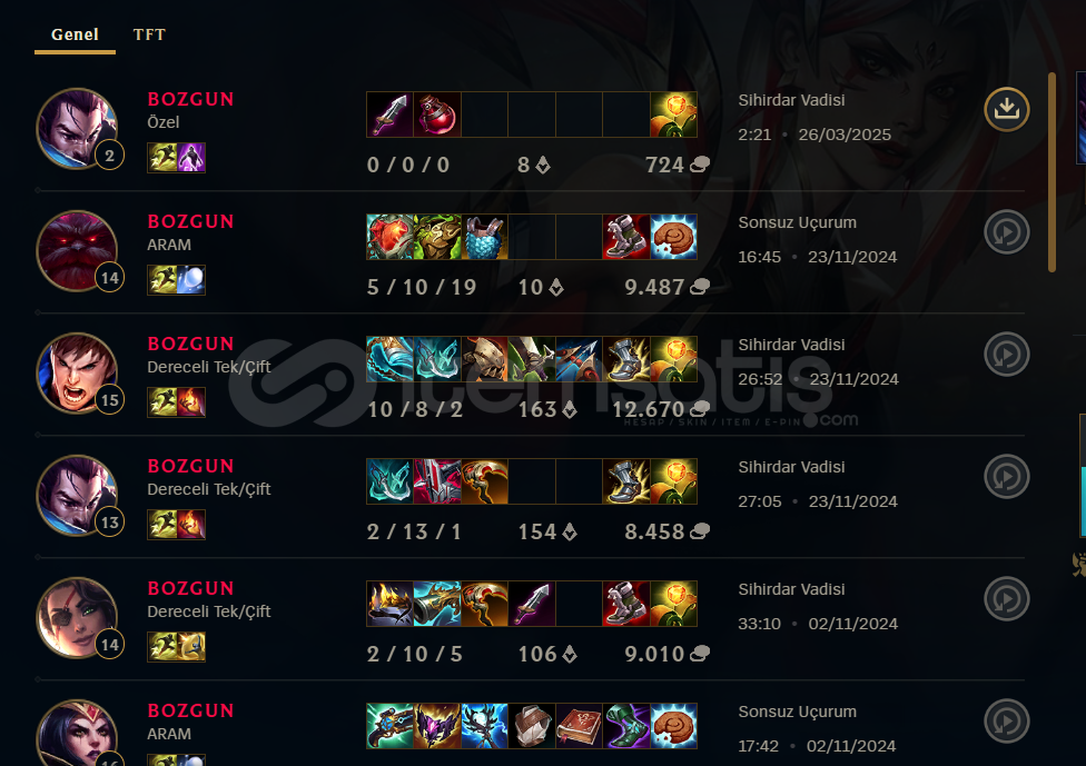 Hesapta her laneden mainlemelik herolara skin bulunmaktadır. Takdir seviyesi 3.seviyedir.