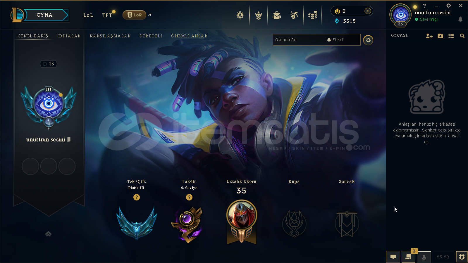 merhaba hesap plat 3 yüksek mmr 38 gelir 12 gider 55 wr 4 kostum var ganımetle bırlıkte 7k ya yakın öz var donusturusenız ganımettekılerı onun dısında hesap otomatık teslımattır maıl degısımı olucak zümrütlerle eşleşiyor alıcısna hayırlı olsun