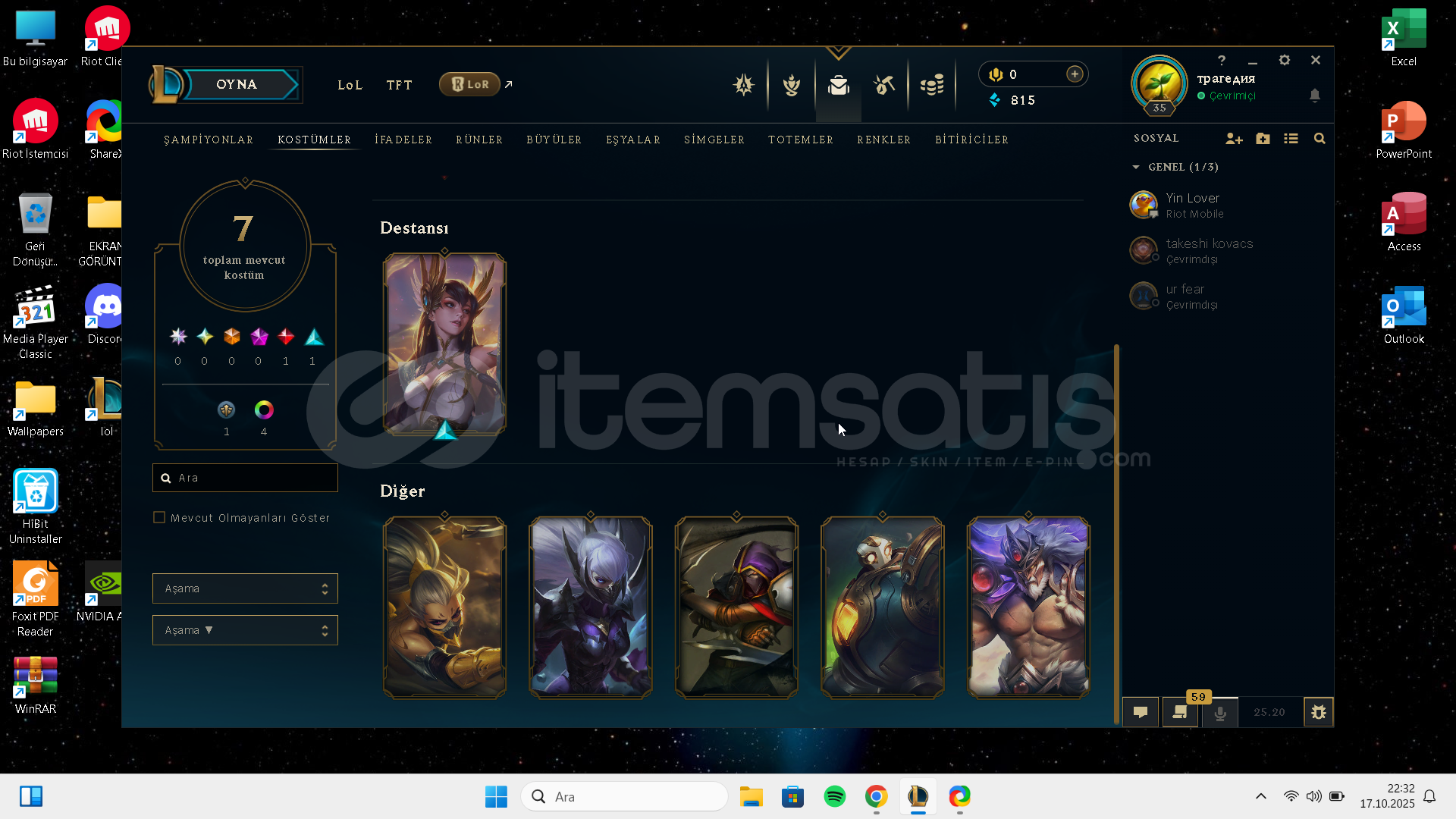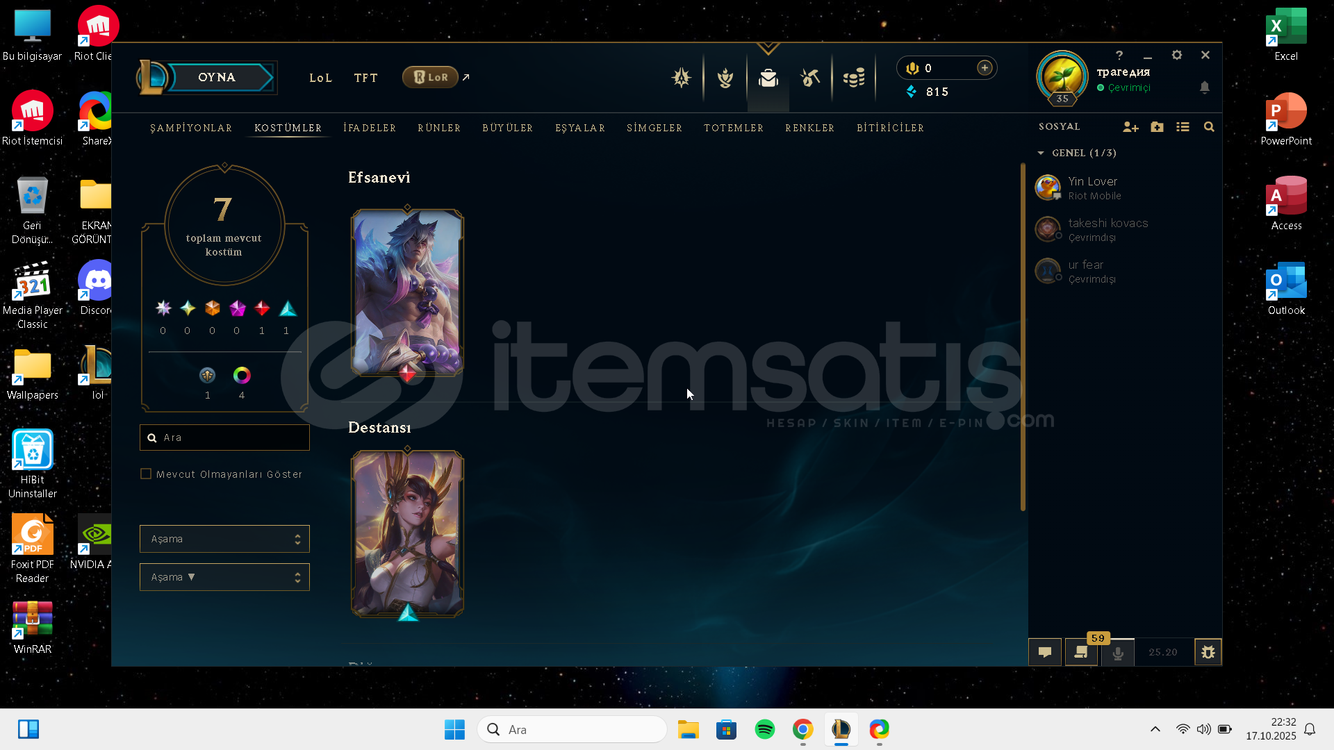 merhaba hesapta isim degişikligide mevcuttur plat 4 yerlestırmelerde irelia settin sevilen kostumlerı bulunmakta mail degişimi olucak alıcısına hayırlı olsun