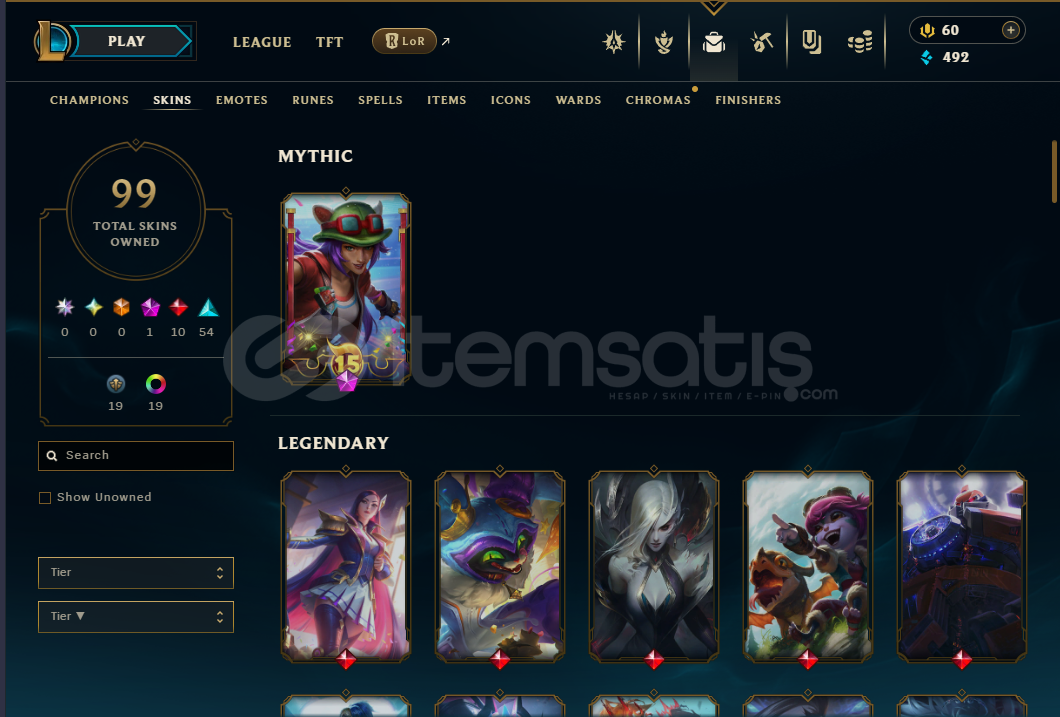 PLAT HESAP 300 LVL BÜTÜN ŞAMPİYONLAR AÇIK