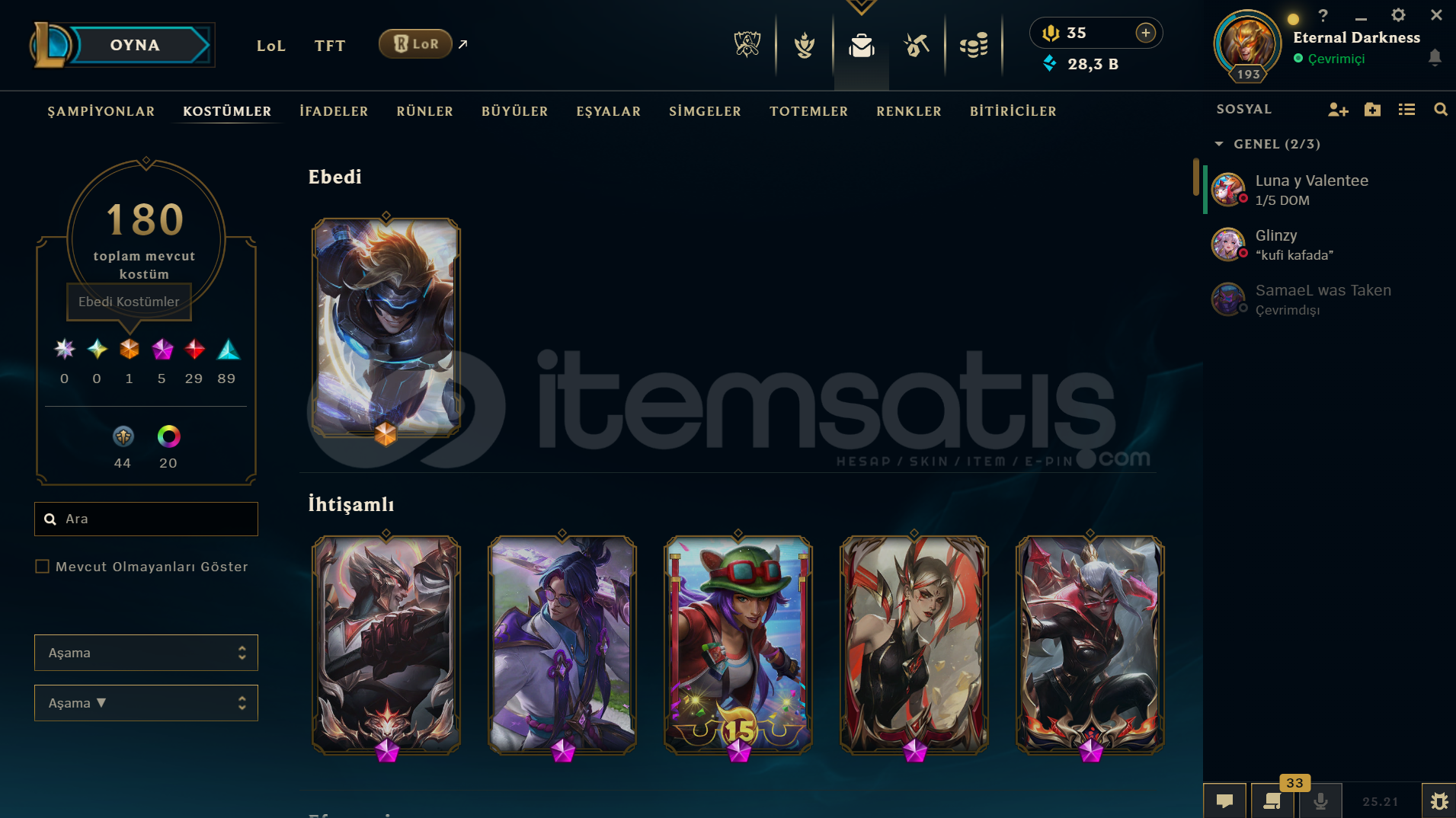 Hesapta 180 adet Skin bulunmaktadır.