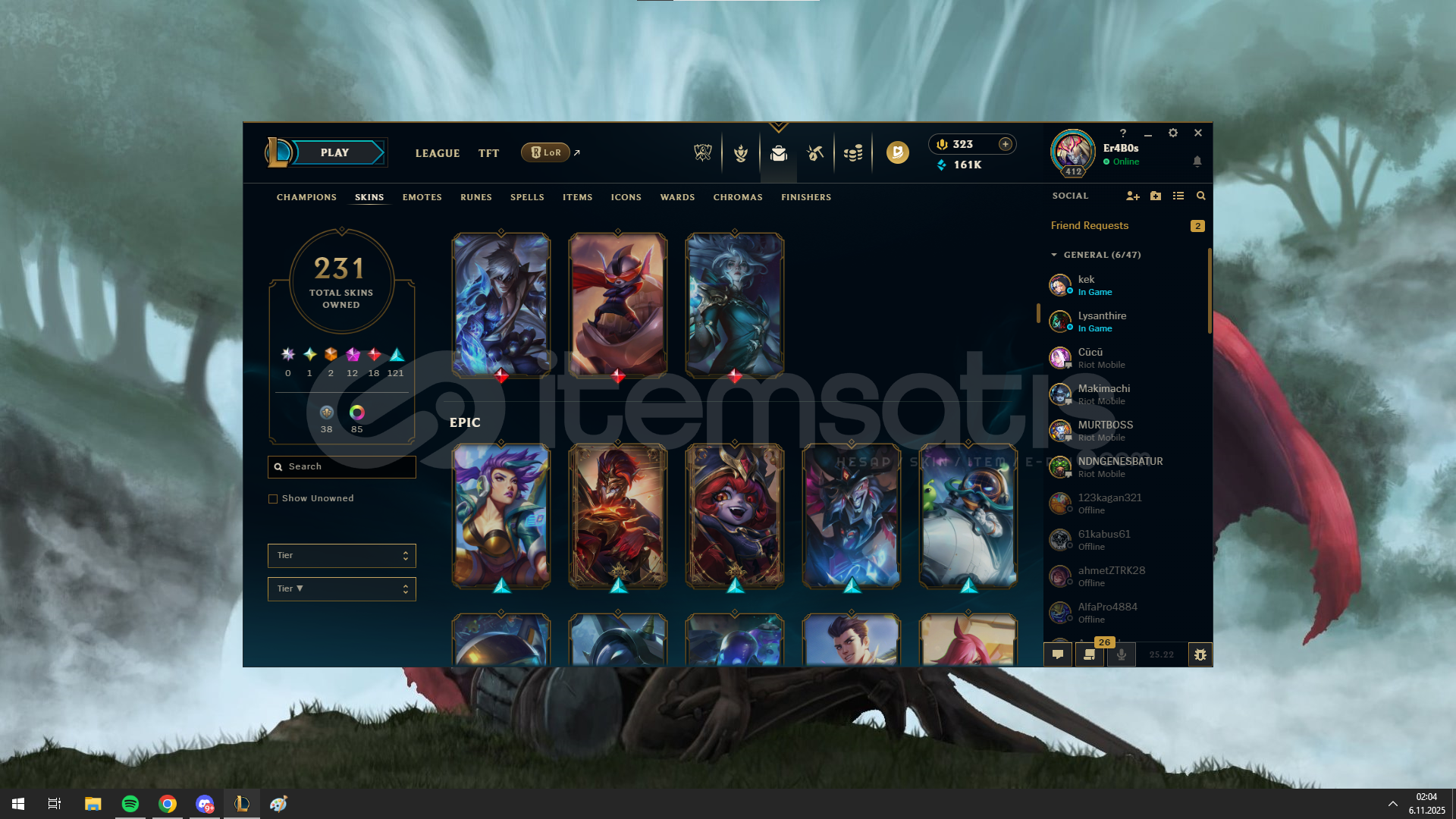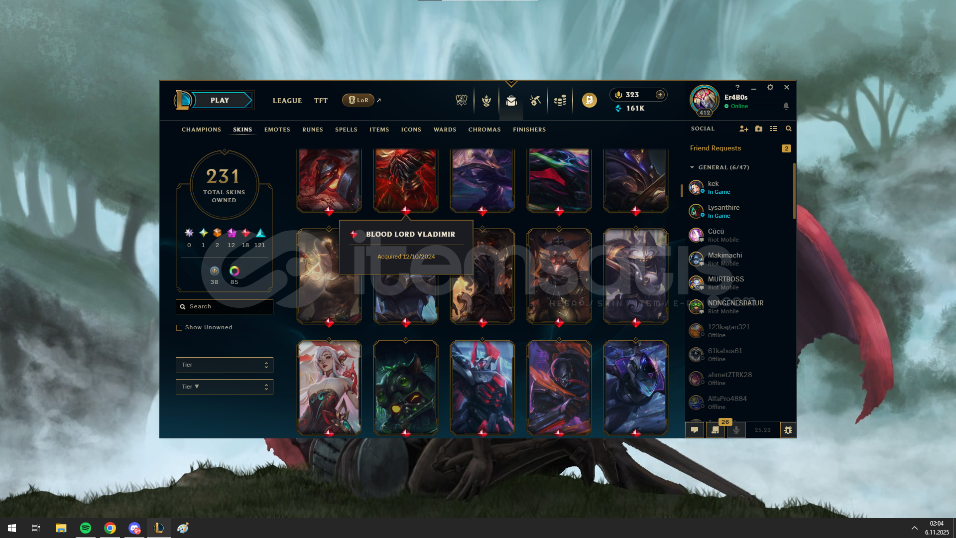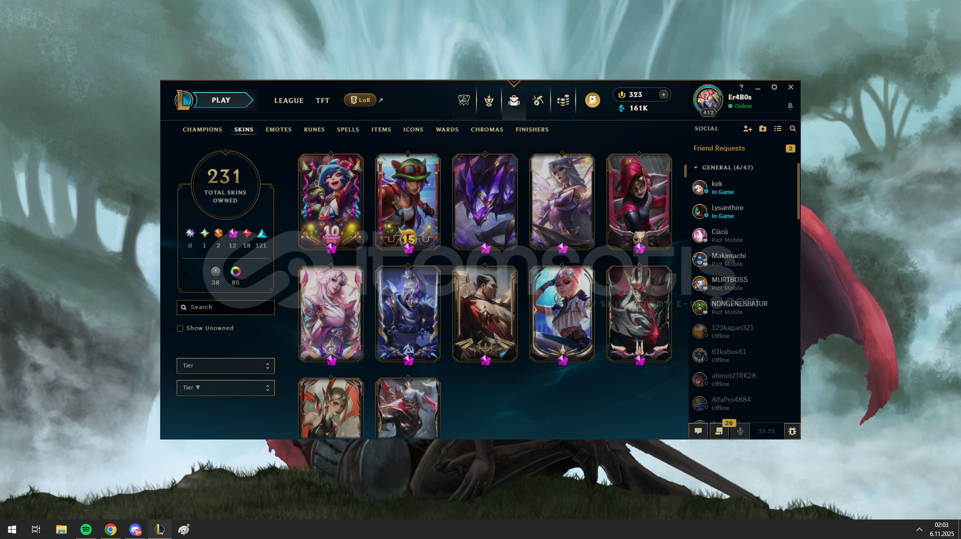 neredeyse tüm şampiyonlar açık ve bir kostüme sahip.Lol envanter:https://youtu.be/kt78kU94utQ