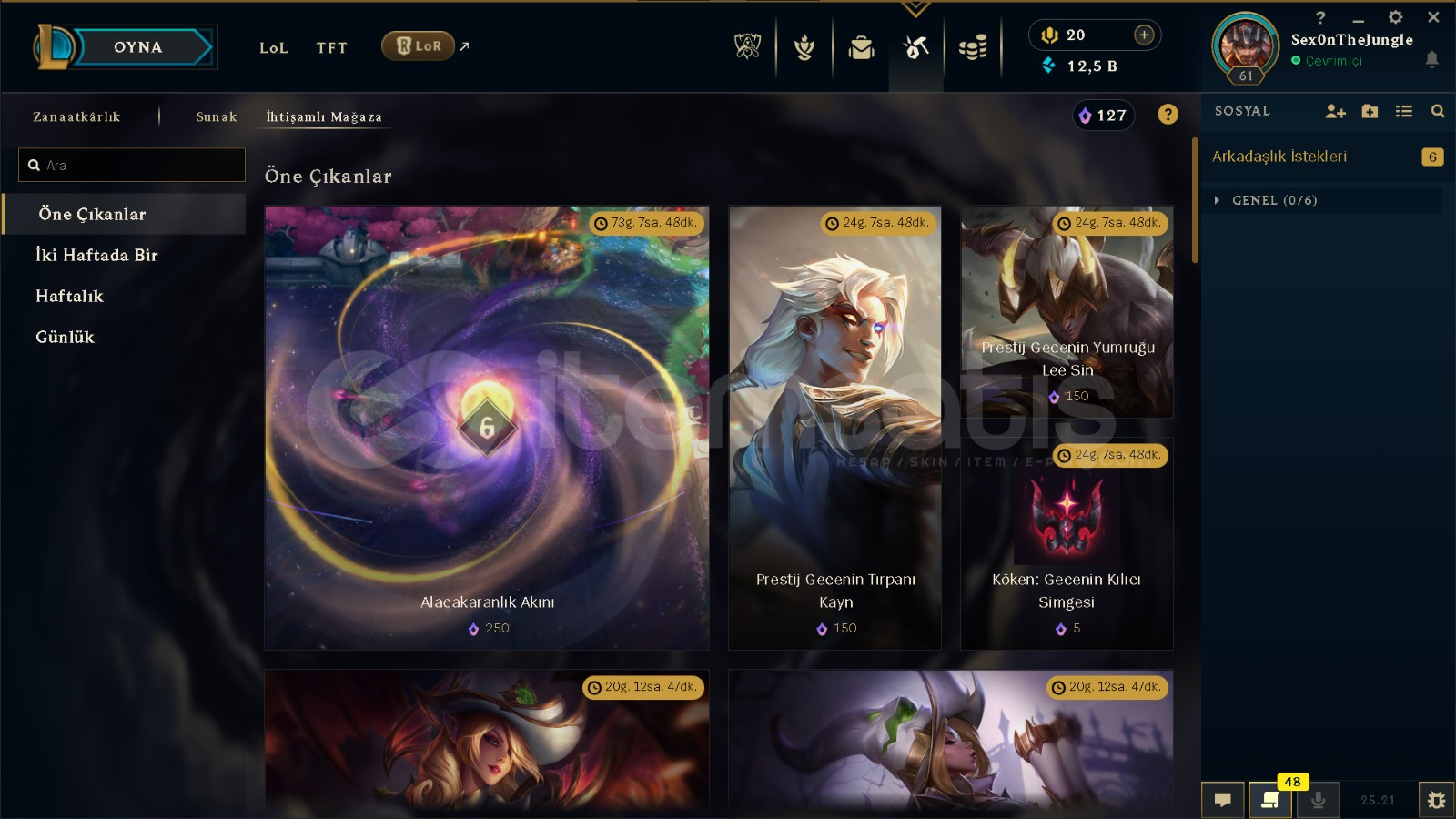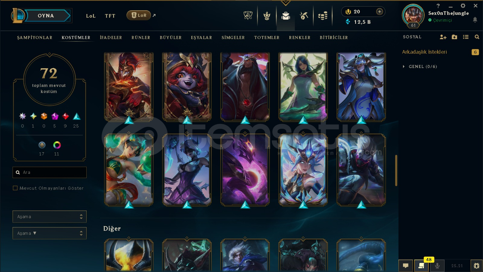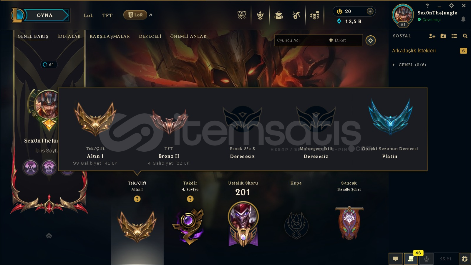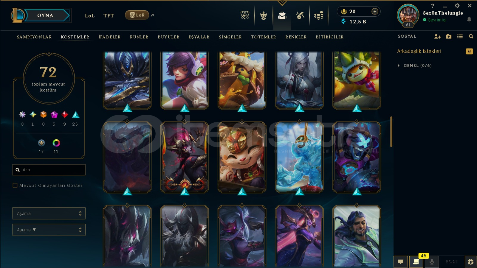 BİR ÇOK SKİN BULUNAN 2020 YILINDA BENİM AÇTIĞIM 3800 TL KADAR PARA YATIRIRMIS HİÇ BAN YEMEMİŞ KALİTELİ BİR JUNGLE MAİN FAKAT DİĞER LANELERDE DE BOLCA KOSTÜM VE HERO BULUNMAKTA