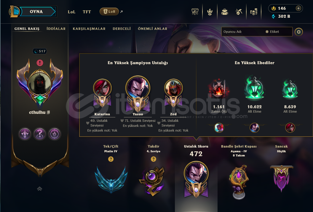Satılık Hesap – Yasuo, Katarina, Zed Main Hesap