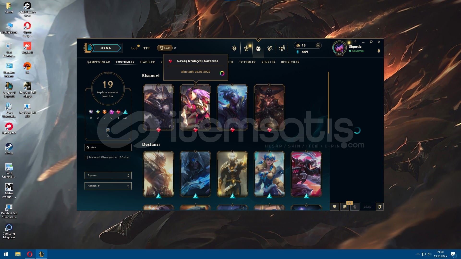 4 tane efsanevi skin var ( savaş kraliçesi katarina ) mevcuttur hastasına