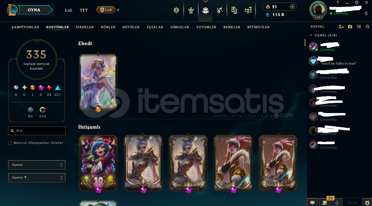 Merhaba hesabımı oyunu bıraktığım için satmaya karar verdim çok bir şey anlatmaya gerek yok zaten görsellerde mecvut.Site dışı kesinlikle iletişim kurmayı düşünmüyorum aktif olarak ilanı kontrol edeceğim ve buradan sorularınızı yanıtlaacağım pazarlık konusunda da pek bi indirim düşünmüyorum ilanda yazdığım rakam neyse o...