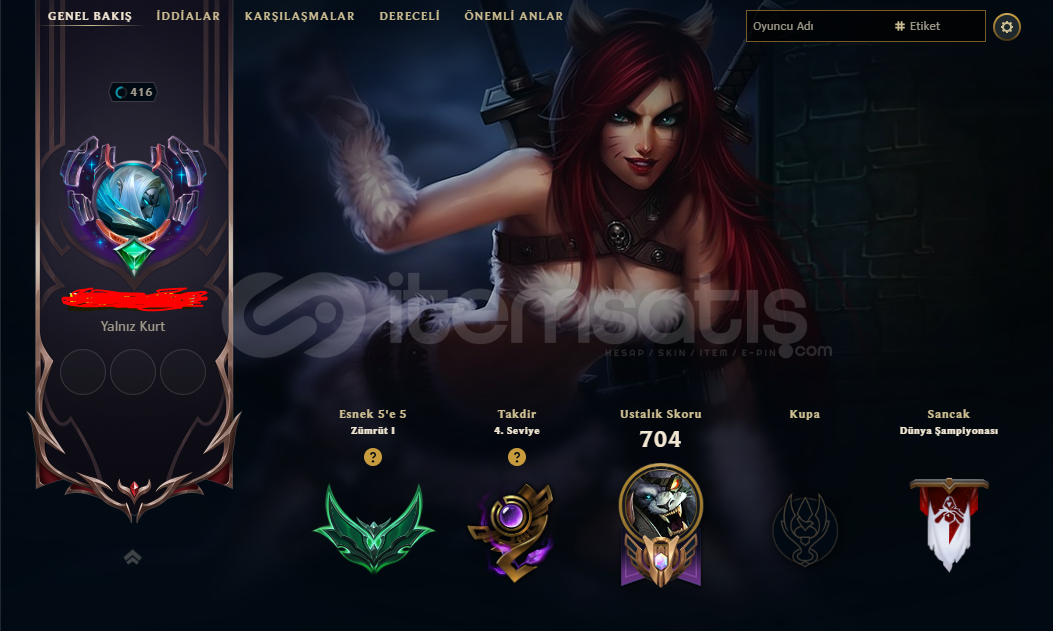 Merhaba, Sezon 4 den beri aktif olarak kullandığım bir hesaptır. Artık LoL oynamaktan keyif almadığım için satmak istiyorum. Elosu genellikle Diamond ve Master arası gidip gelmektedir. Bugüne kadar hesap hiçbir şekilde ban yemedi ve söz konusu değildir. Satın almanız durumunda TFT hesabıda otomatikmen sizln olacaktır. Hesapta 53bin mavi öz 223 kostum ve bütün şampiyonlar bulunmaktadır.