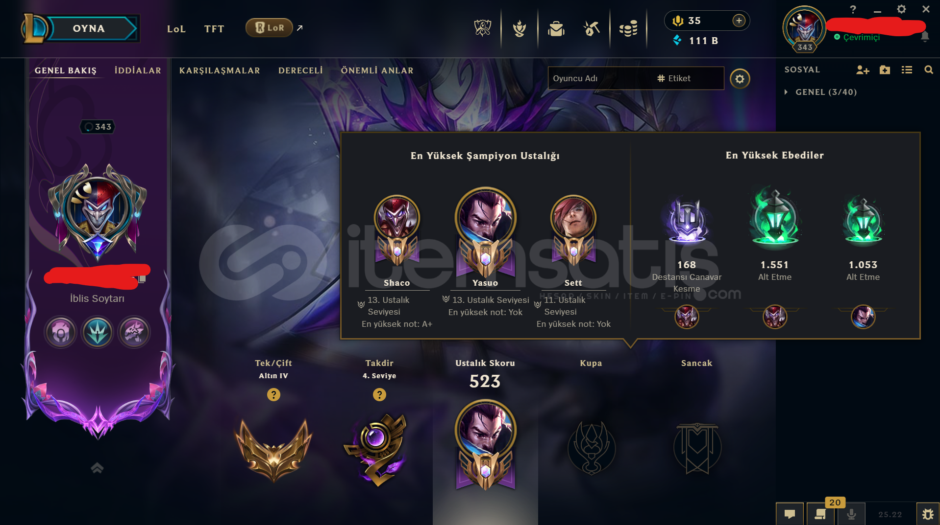 Shaco main 7 Prestij 3 ebedili mainlik hesap