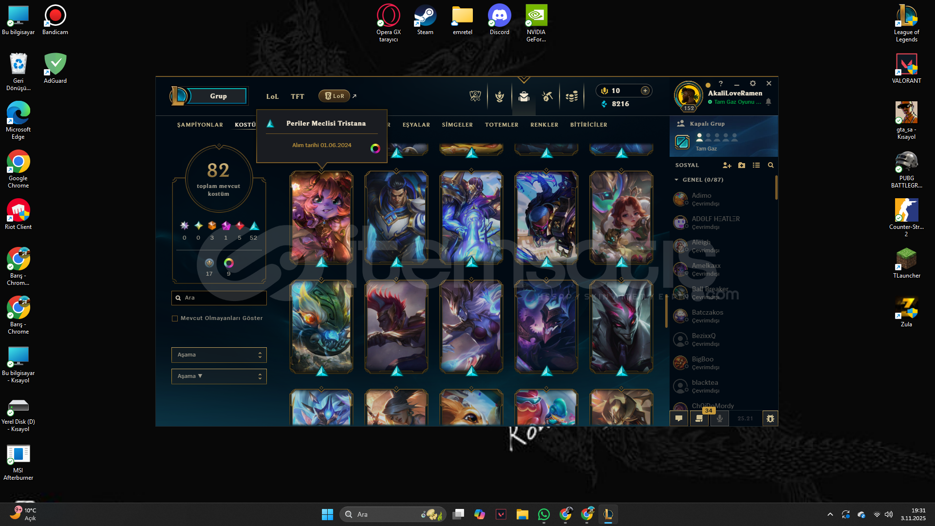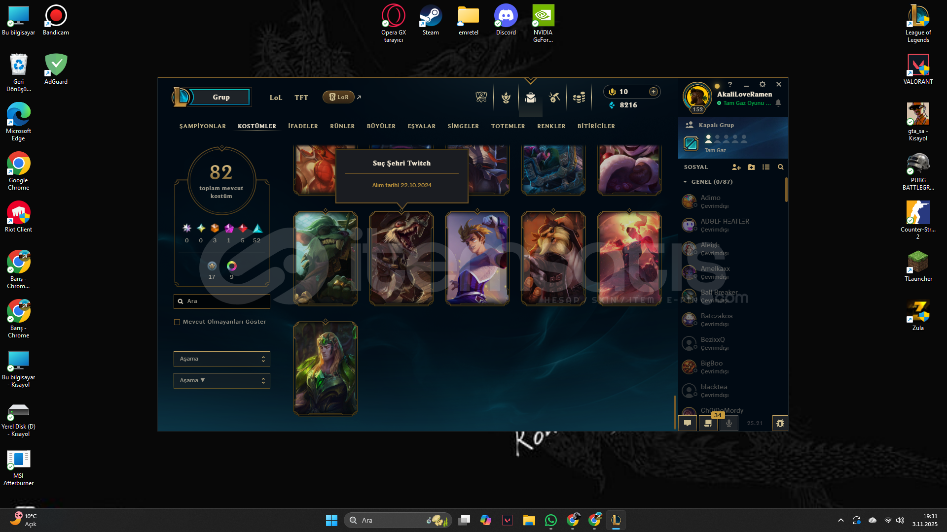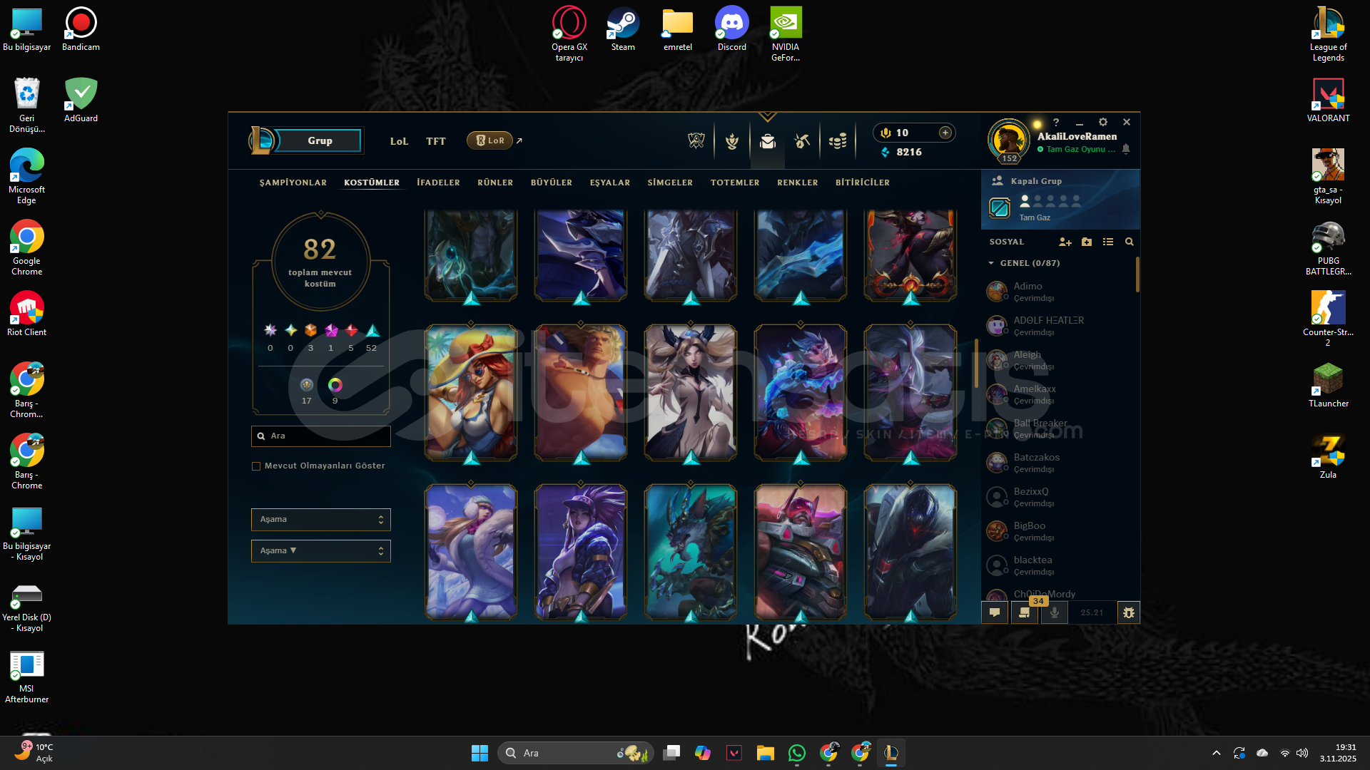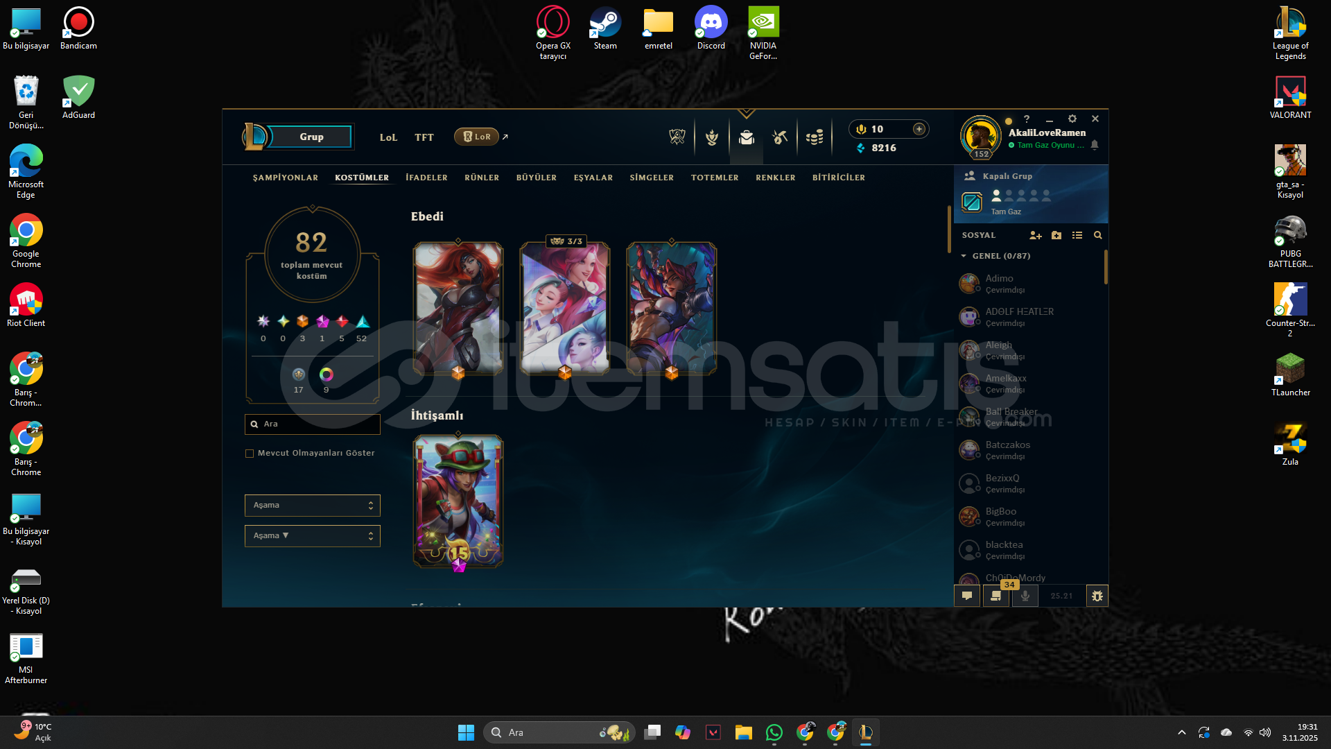82 KOSTUMU AKTIF HESAP 152 LEVELDİR VALORANT HESABIDA AKTIFTIR İÇİNDE RUH AZABI TRIPAN MEVCUT HESAP TR EU SUNUCUDA OYNANIR ÖMÜR BOYU GARANTİSİ VAR