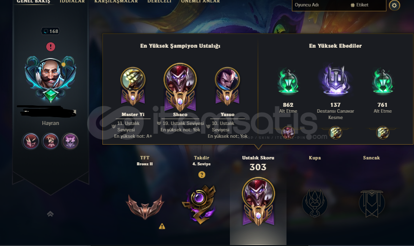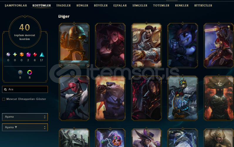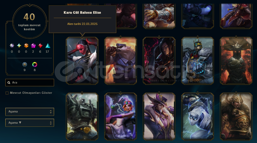 Lol'ü 2023den beri oynuyorum ve bırakmaya karar verdim bu yüzden hesabı satıyorum. Hesabın içeriği görseldeki gibidir alıcısına hayırlı olsun.