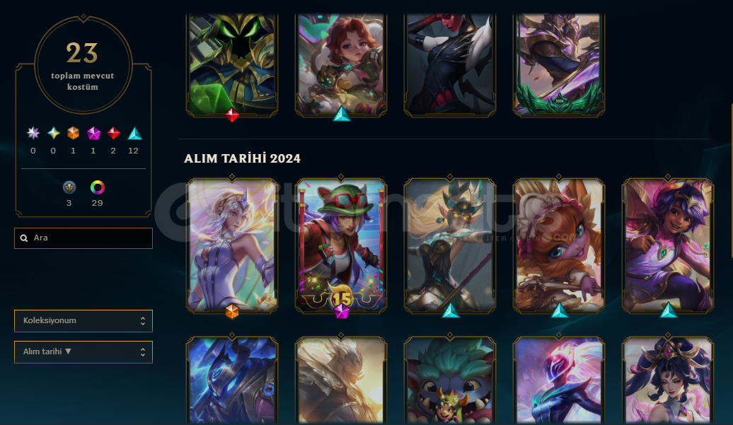 100 e yakın şampiyon açıkSkinler genellikle supportlardadır