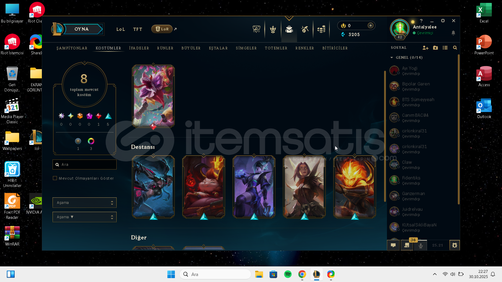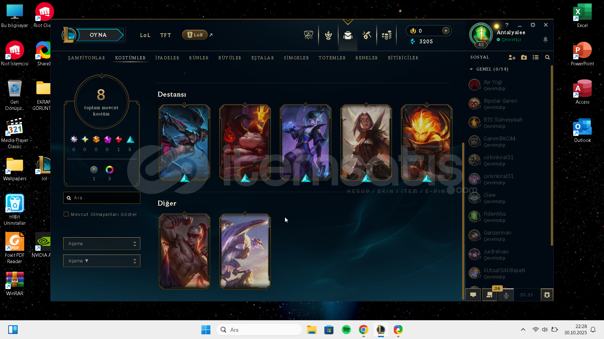 merhaba hesapta güzel kostumler bulunmakta yerlestırme maclarındadır yüksek lp alırsınız + özellikle hesap türkiye kurulumludur fresh veya botted accauntlardan degıldır ban yemez otomatık teslımattır alıcısına hayırlı olsun isim degiştirme aktif