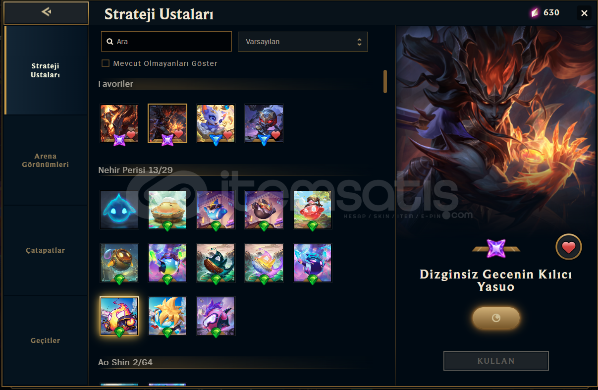 TFT için 1 Adet Dizginsiz Gecenin Öfkesi Yasuo (KENDİ ARENASI VE ÇATAPATI DAHİLDİR) ve Dizginsiz Vahşi Batılı Thresh (KENDİ ÇATAPATI DAHİLDİR) kostümleri mevcuttur.