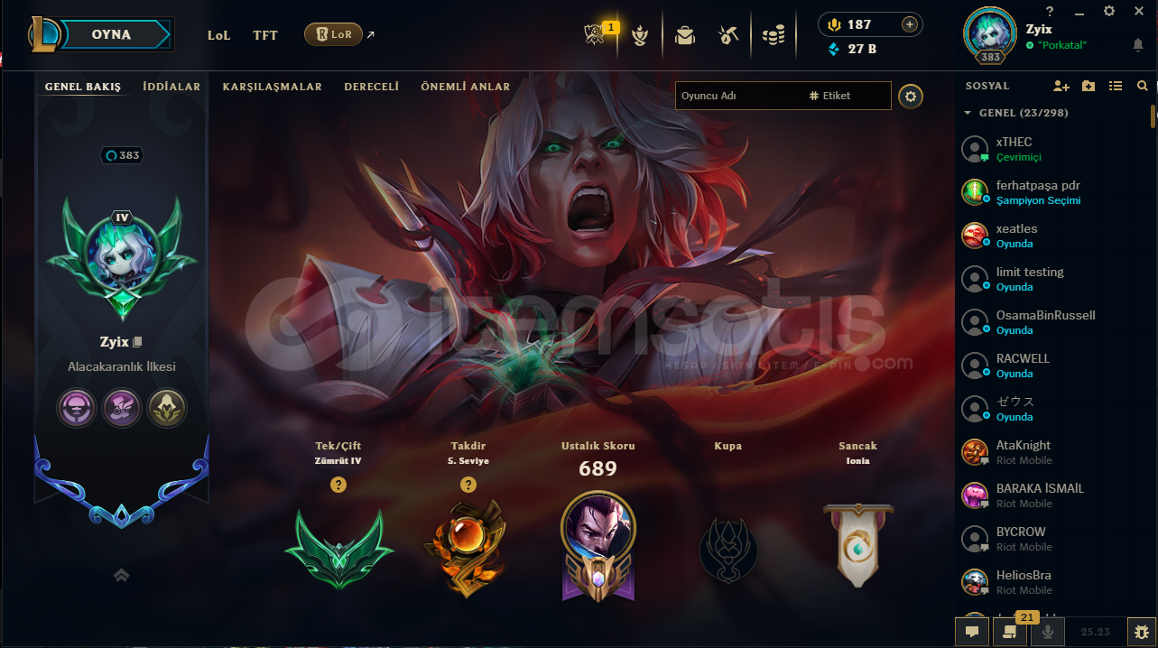 Tertemiz LoL hesabı cumaya kadar bu fiyat.
