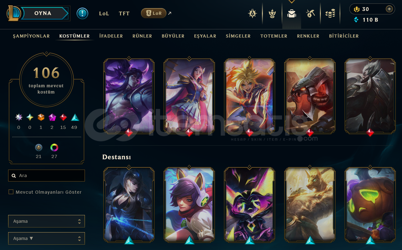 HESAP DETAYLARISKİN SAYISI : 106HERO SAYISI : FULL HEROLEVEL : 382RANK : GOLD 2SERVER : TRHESABIN TÜM BİLGİLERİNİ DEĞİŞTİREBİLİRSİNİZ.HESABIN HERHANGİ BİR BANI MEVCUT DEĞİLDİR.SATIN ALINDIKDA SONRA EN KISA SÜREDE TESLİM EDİLİR.HER BÜTÇEYE UYGUN İSTEĞE ÖZEL HESAPLAR MEVCUTTUR.SATIN ALMADAN ÖNCE LÜTFEN MESAJ ATINIZ.TÜM SORULARINIZ İ&Ccedi...