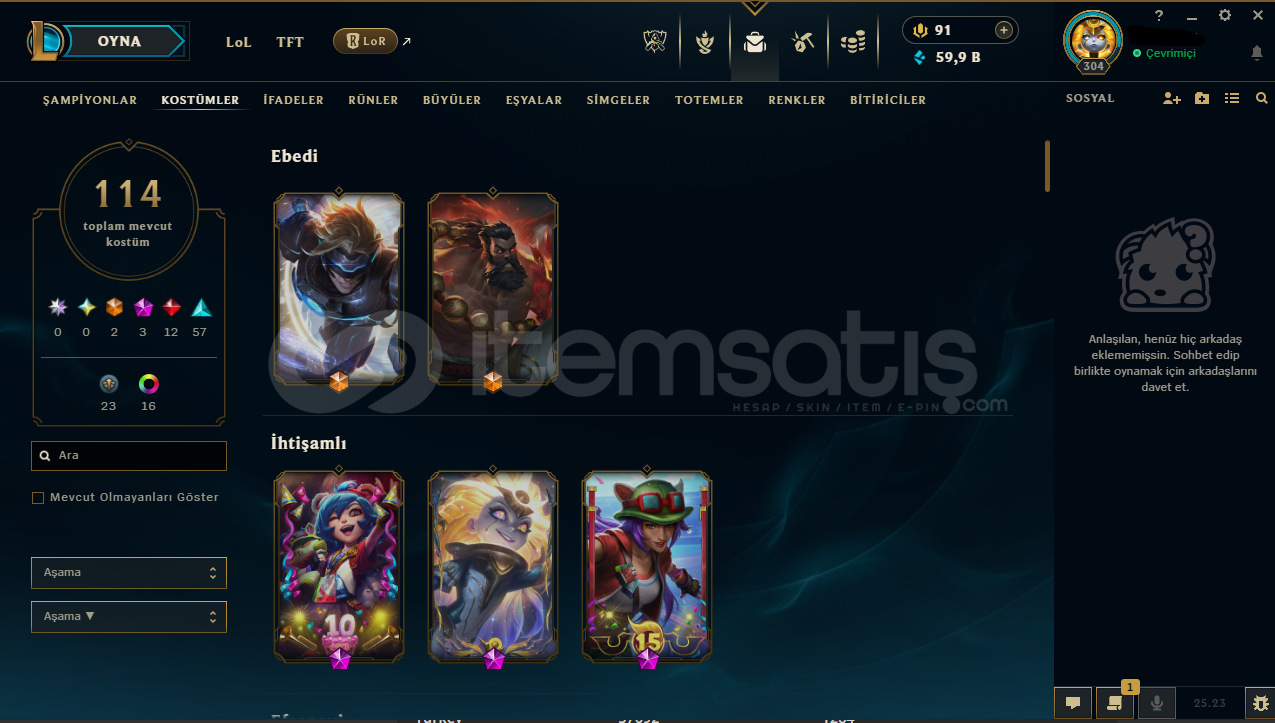 Hesabın E-Posta'sı ve Tüm bilgileri değiştirilebilir.Teslimatlar Otomatik Yapılmaktadır, 7/24 satın alır almaz tüm hesap bilgilerine ulaşabilirsiniz...Dereceli Direkt Girilebilir.-----------VALORANT SKIN DEĞERİ YAKLAŞIK OLARAK 3050VP'YE DENK GELMEKTEDIR.VALO 47 LEVEL VE GOLD I RANKLIDIR.-----------59,9K Mavi Öz & 34 Turuncu Öz+109 İhtişamlı Öz Bulunmaktadır.Hesabınızı...
