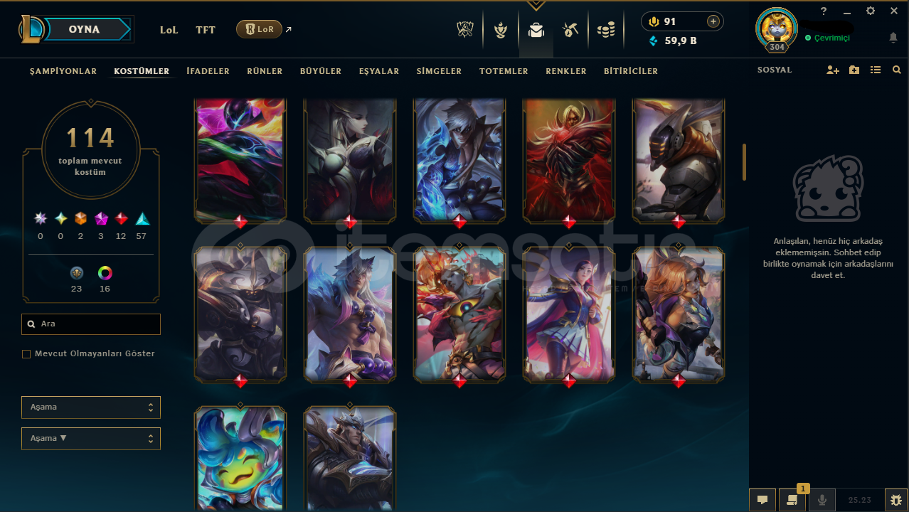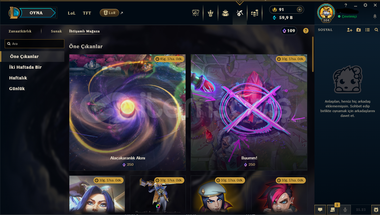 59,9K Mavi Öz & 34 Turuncu Öz+109 İhtişamlı Öz Bulunmaktadır.