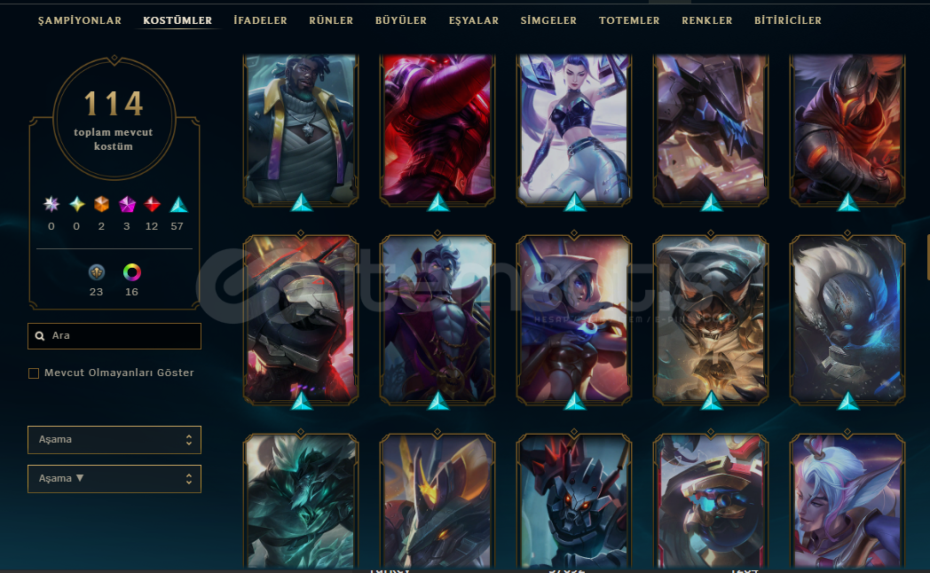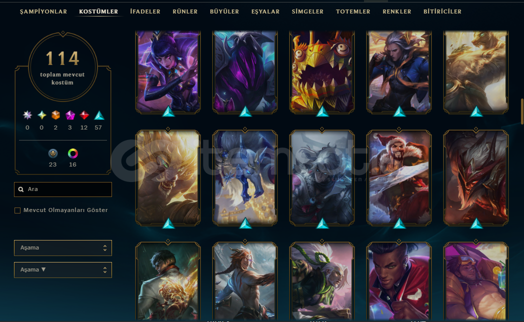 114 Kostümve 147 Şampiyon bulunmaktadır.