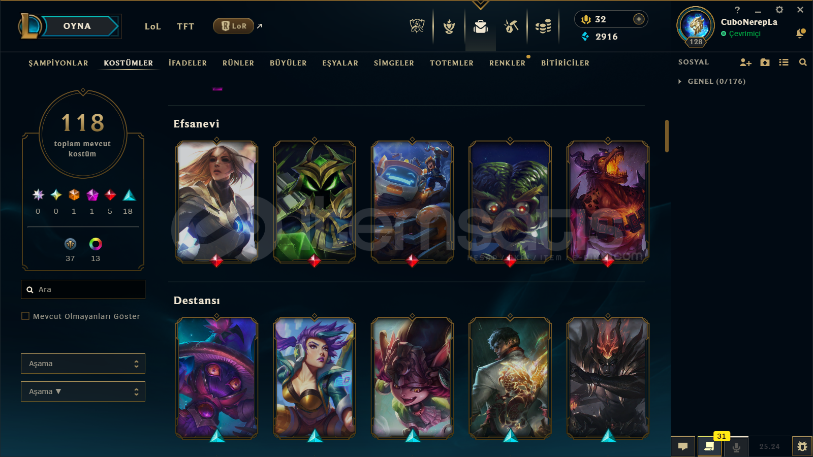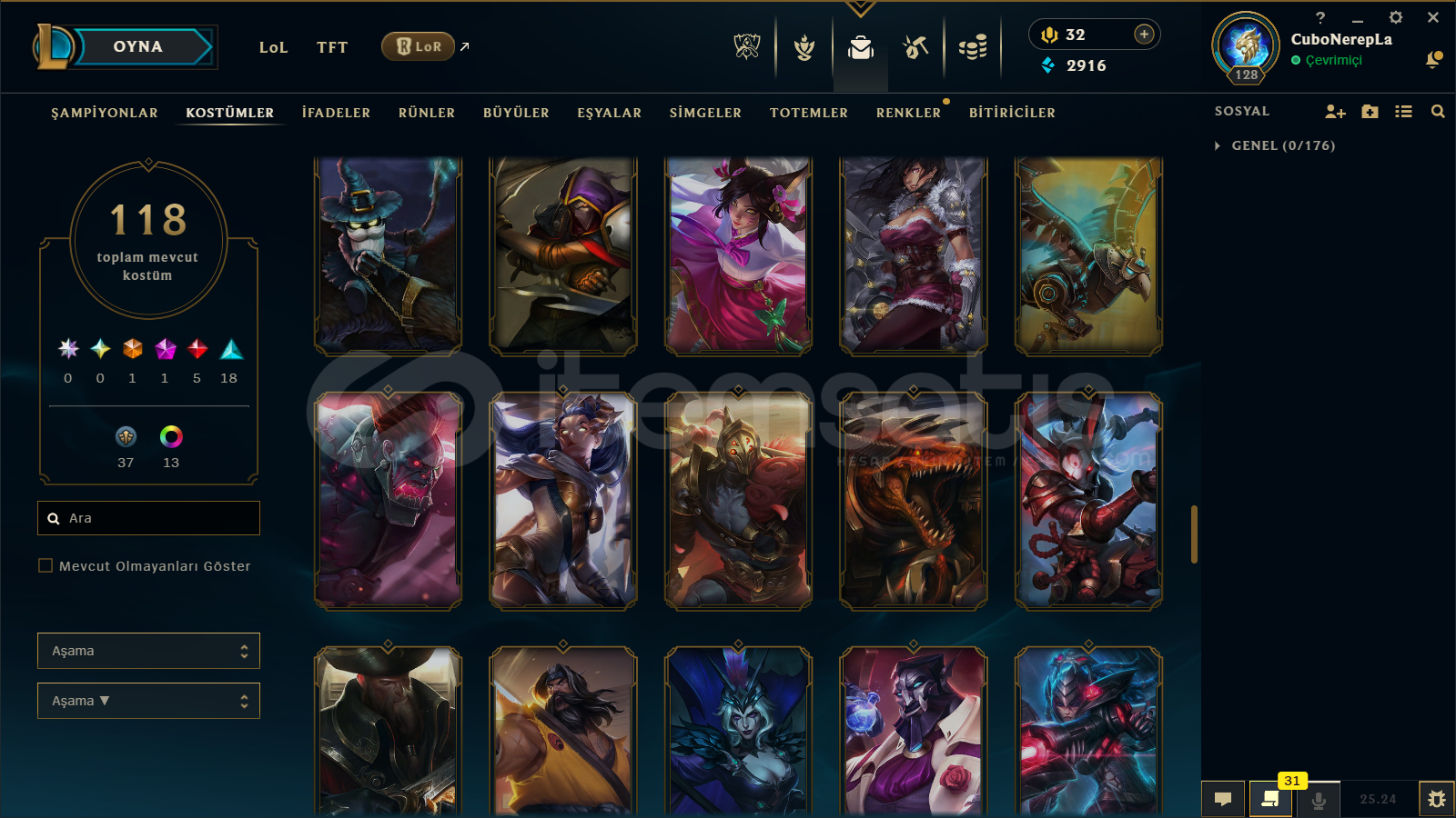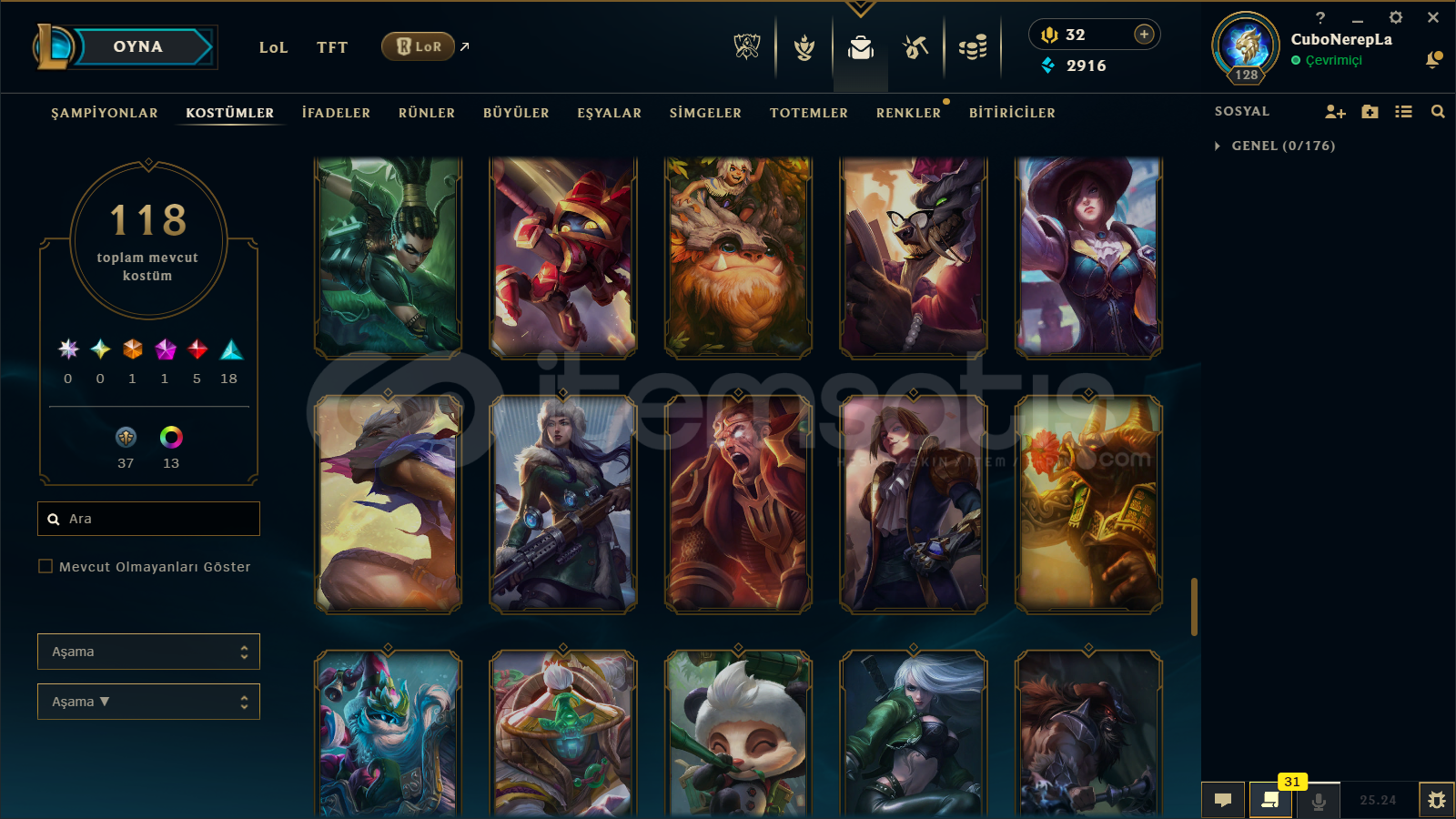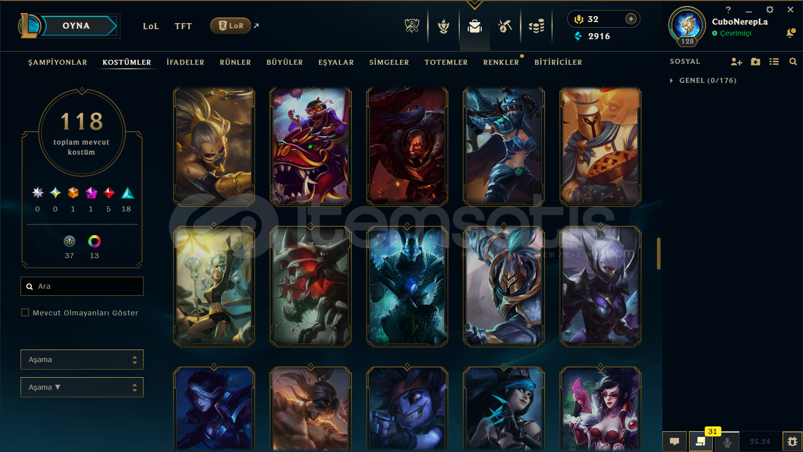 🔷 League of Legends Bilgileri🔹 Sunucu: TR🔹 Level: 128🔹 Sıralama:• Tek/Çift: Altın 1• Esnek 5v5: Altın 4🔹 Mavi Öz: 2916🔹 Şampiyon Sayısı : 134🔹 Kostüm Sayısı: 118📊 OP.GG Profili : https://op.gg/tr/lol/summoners/TR/CuboNerepLa-TR1✅ Hesaplarımın Tamamen ArkasındayımPiyas...