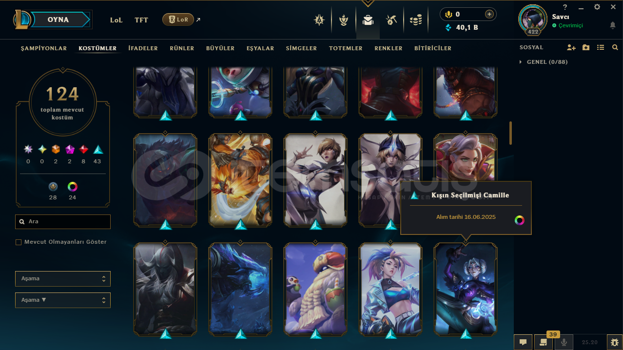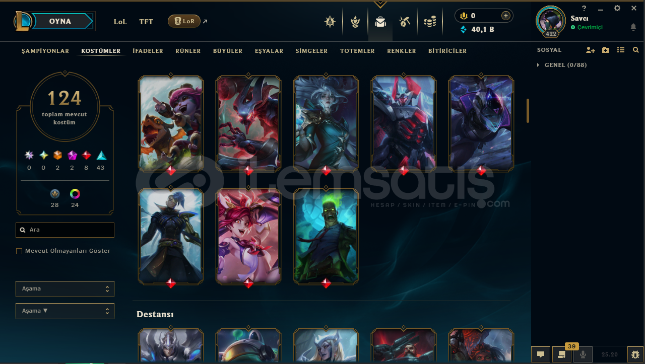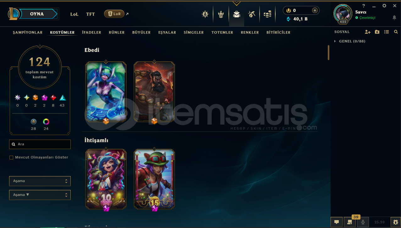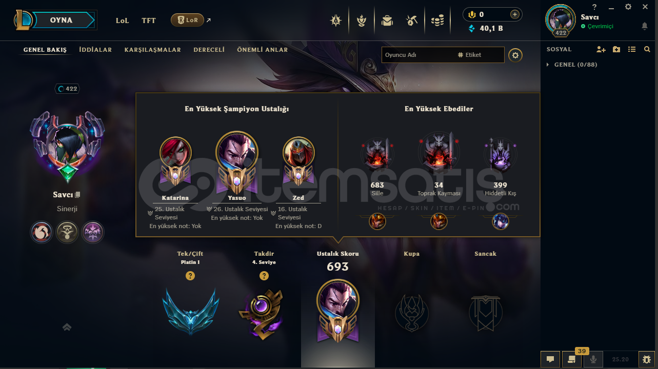 tr server124 kostümplatin 1 elodadırö.s zümrüt106W 111LWin rate 49oyun atılmıyor26 lvl yasuo25 lvl kata16 lvl zedhesapta herhangi bir ban yokturmail değişimi yapılıcaktırsatın alım sonrası hızlıca teslim ediyorum .