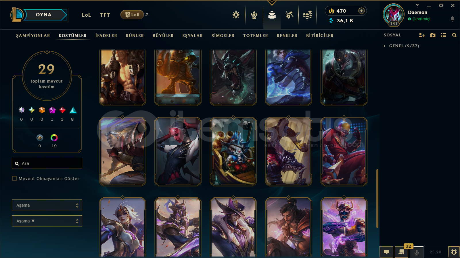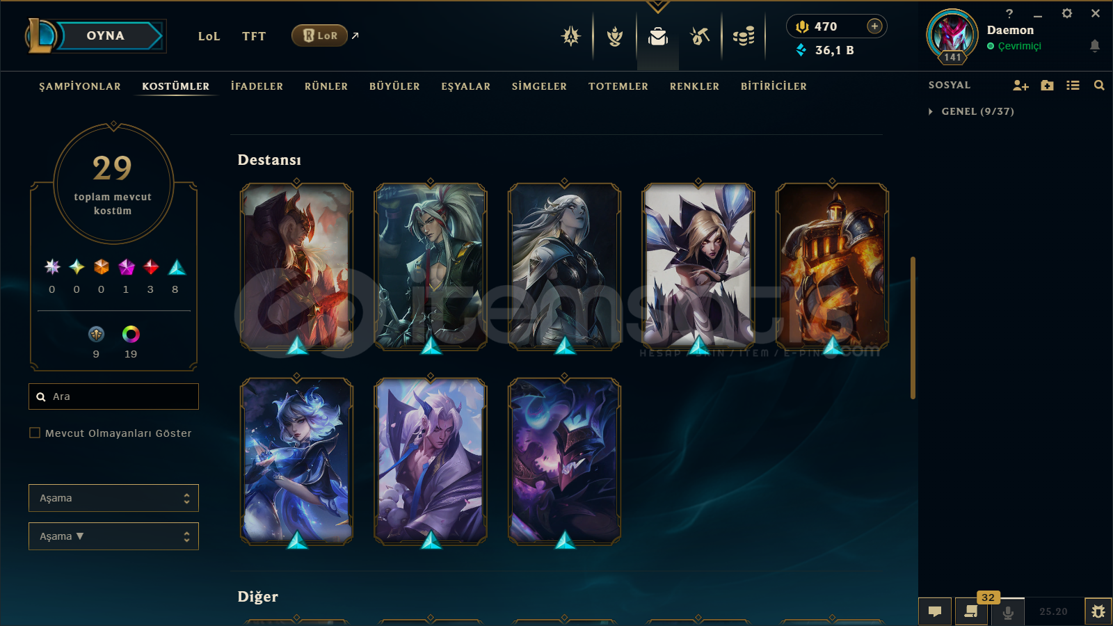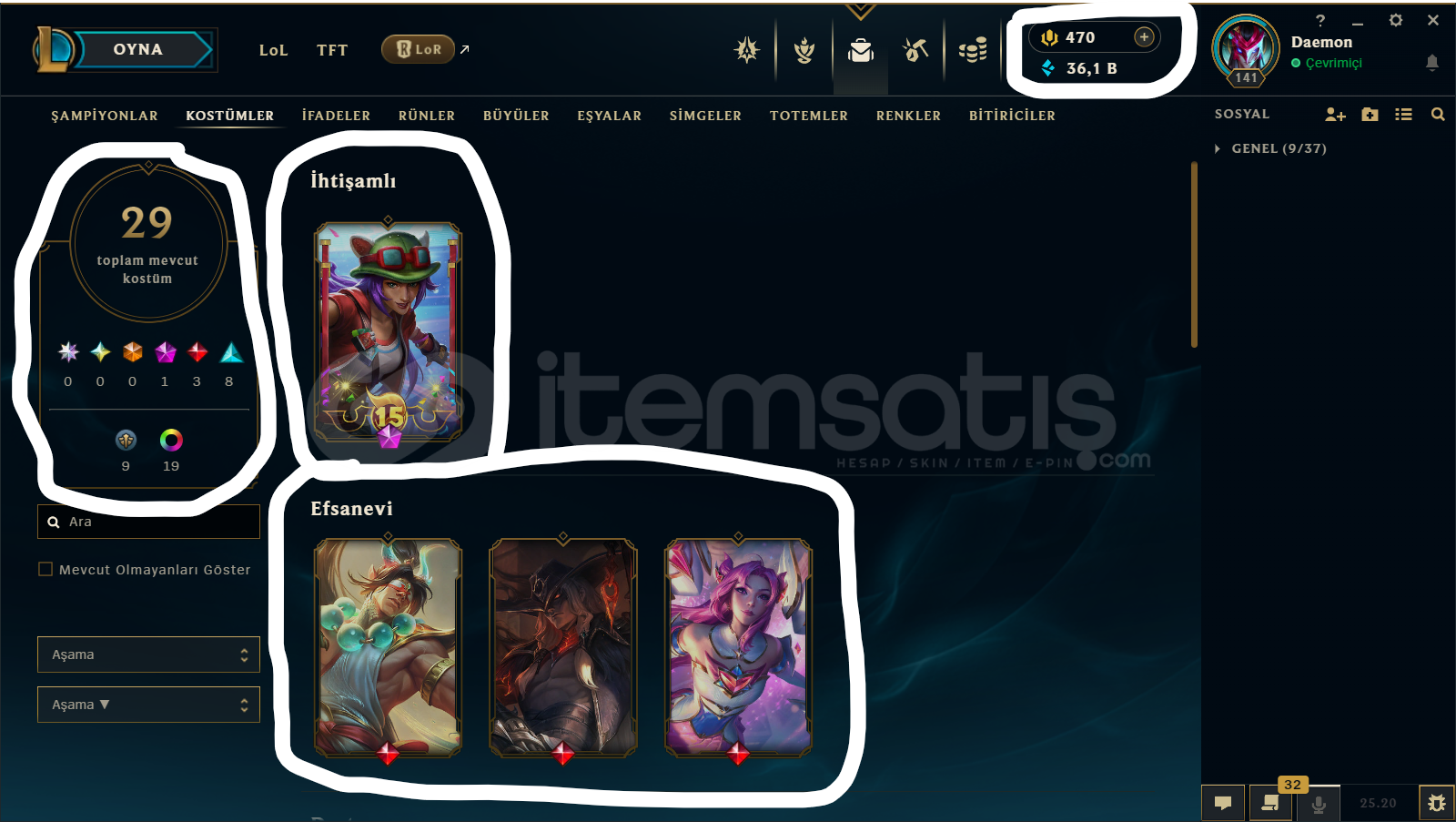 TR/ 141 LEVEL / 29 SKİN / 93 HERO+TELEFON+MAİL