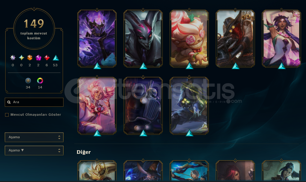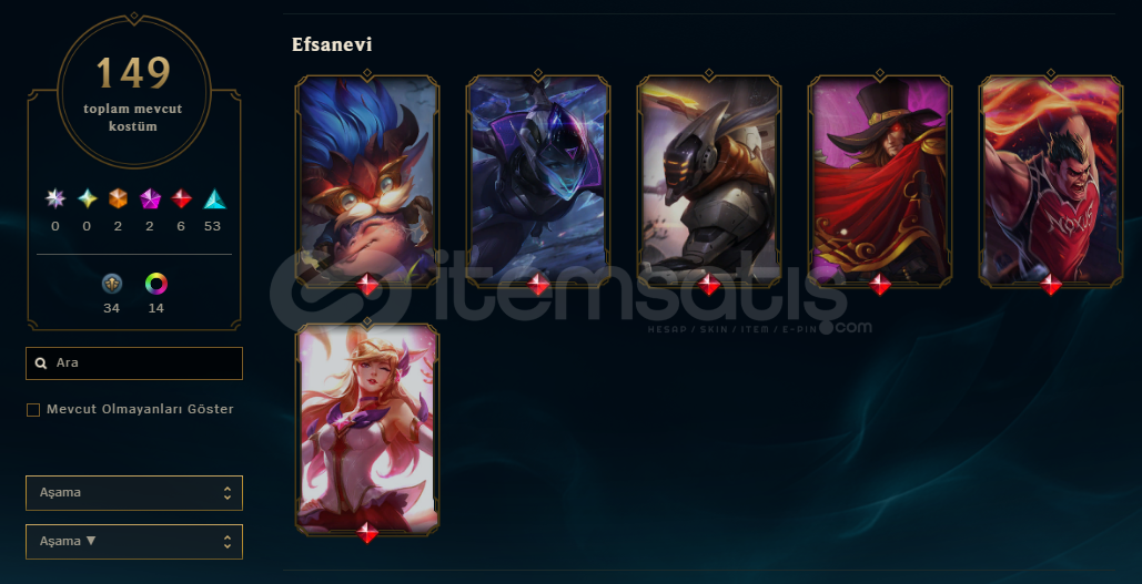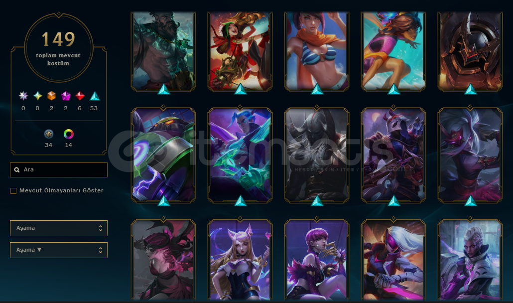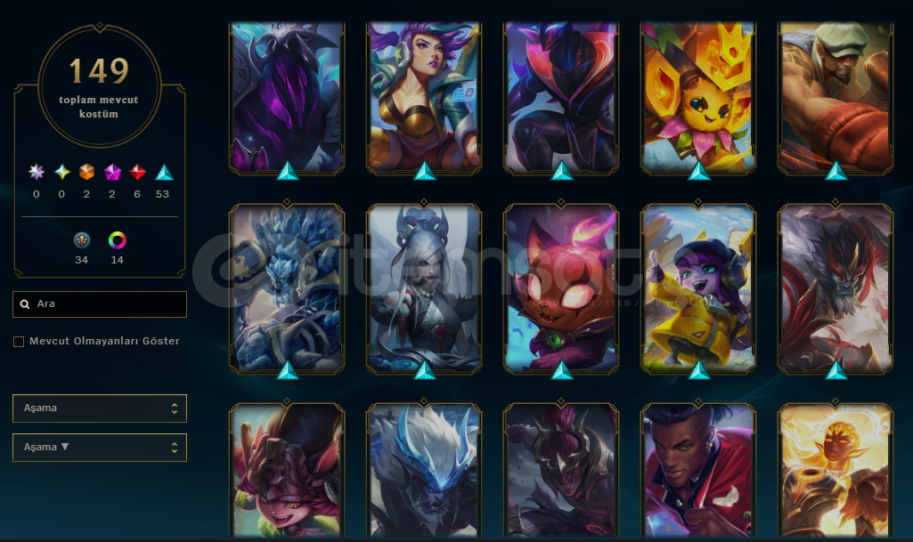 149 Kostümve 171 Şampiyon(Bütün hepsi) bulunmaktadır.