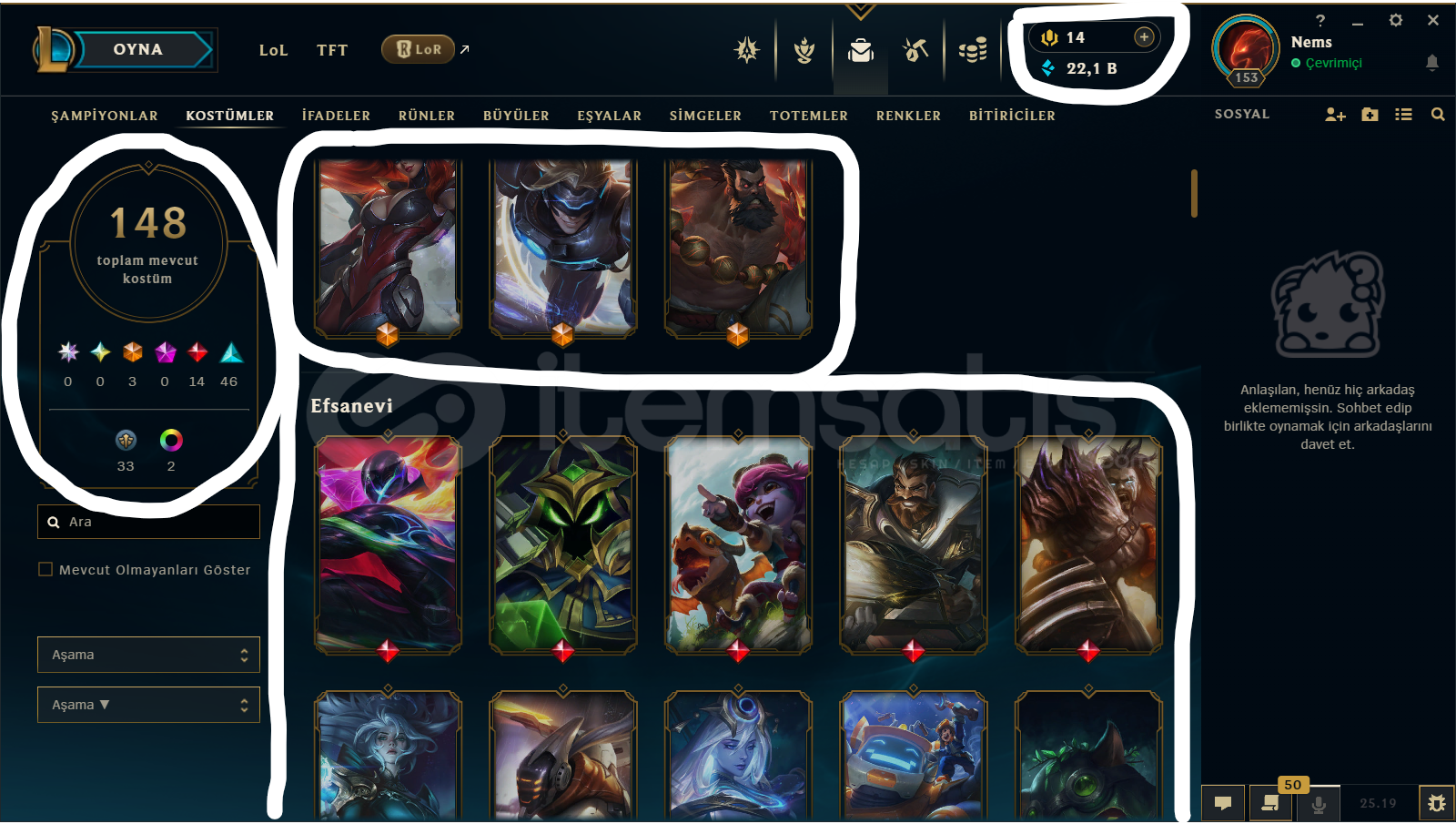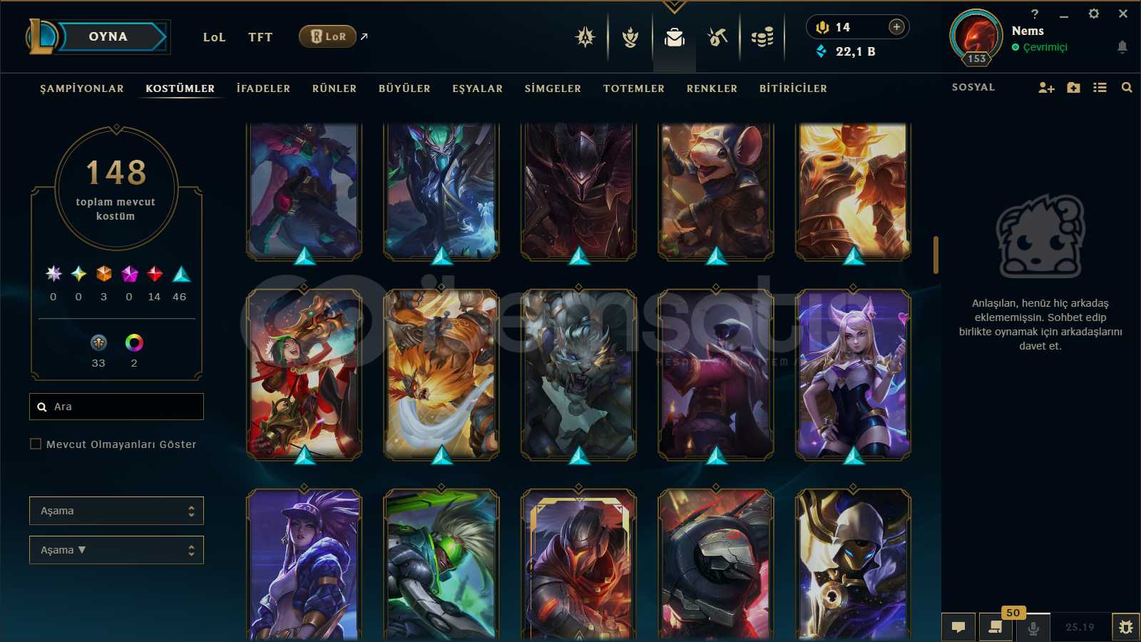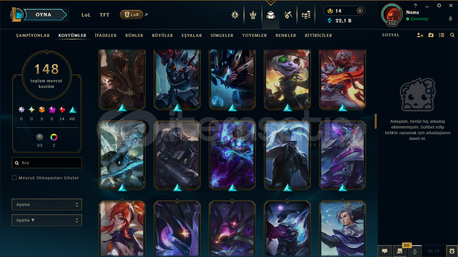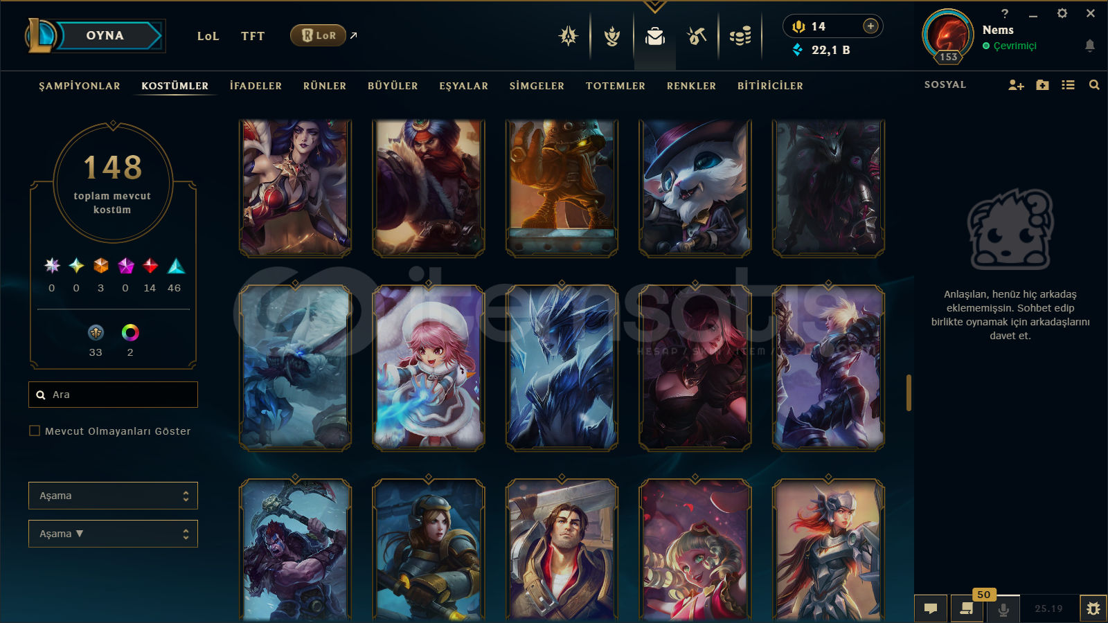 TR / 153 LEVEL / 148 SKİN / 134 HERO + MAİL