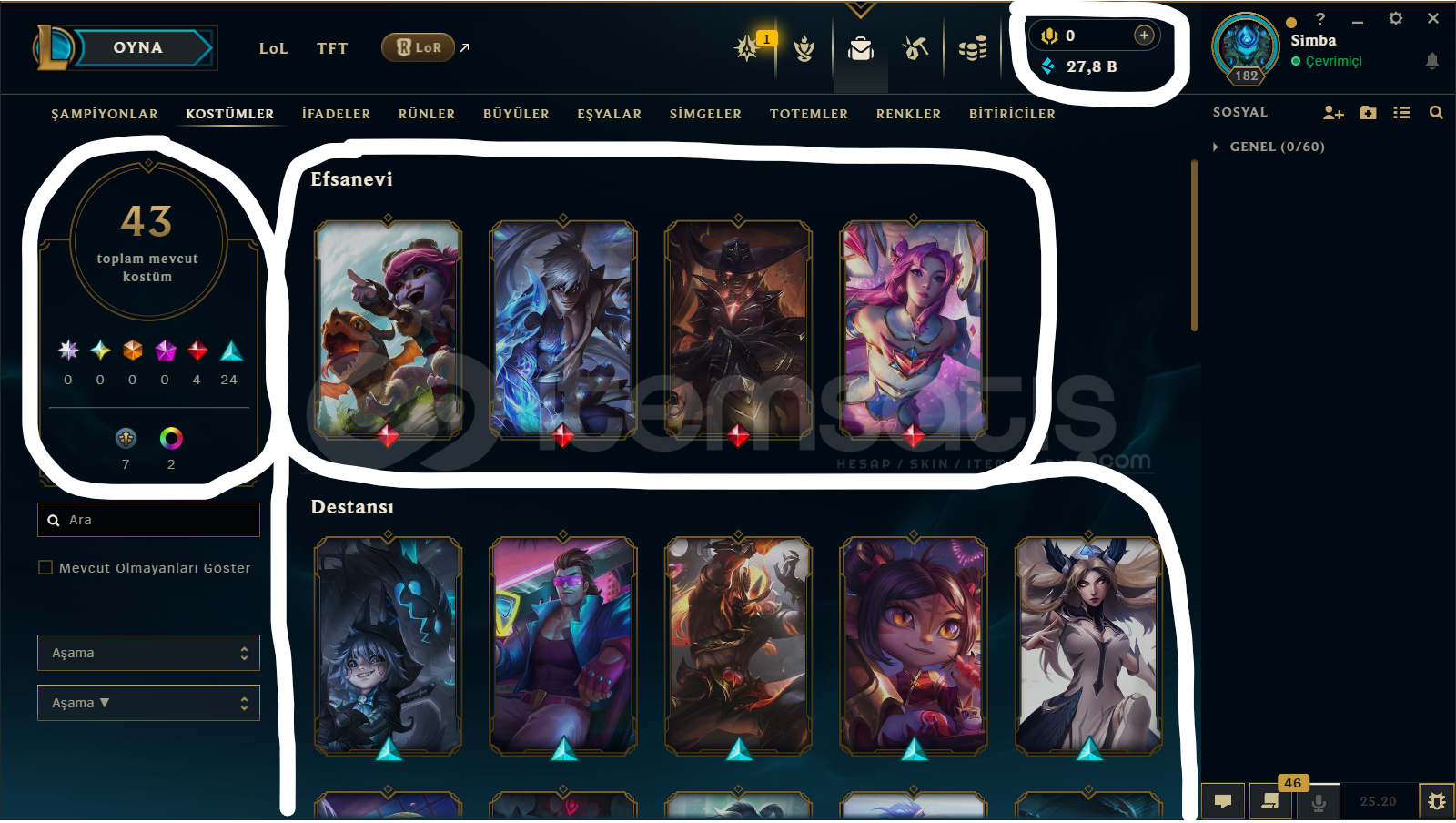 TR / 182 LEVEL / 43 SKİN / 115 HERO + MAİL