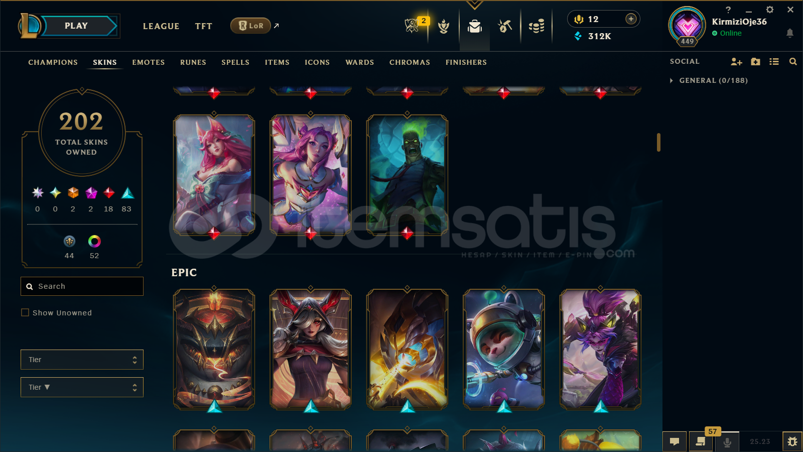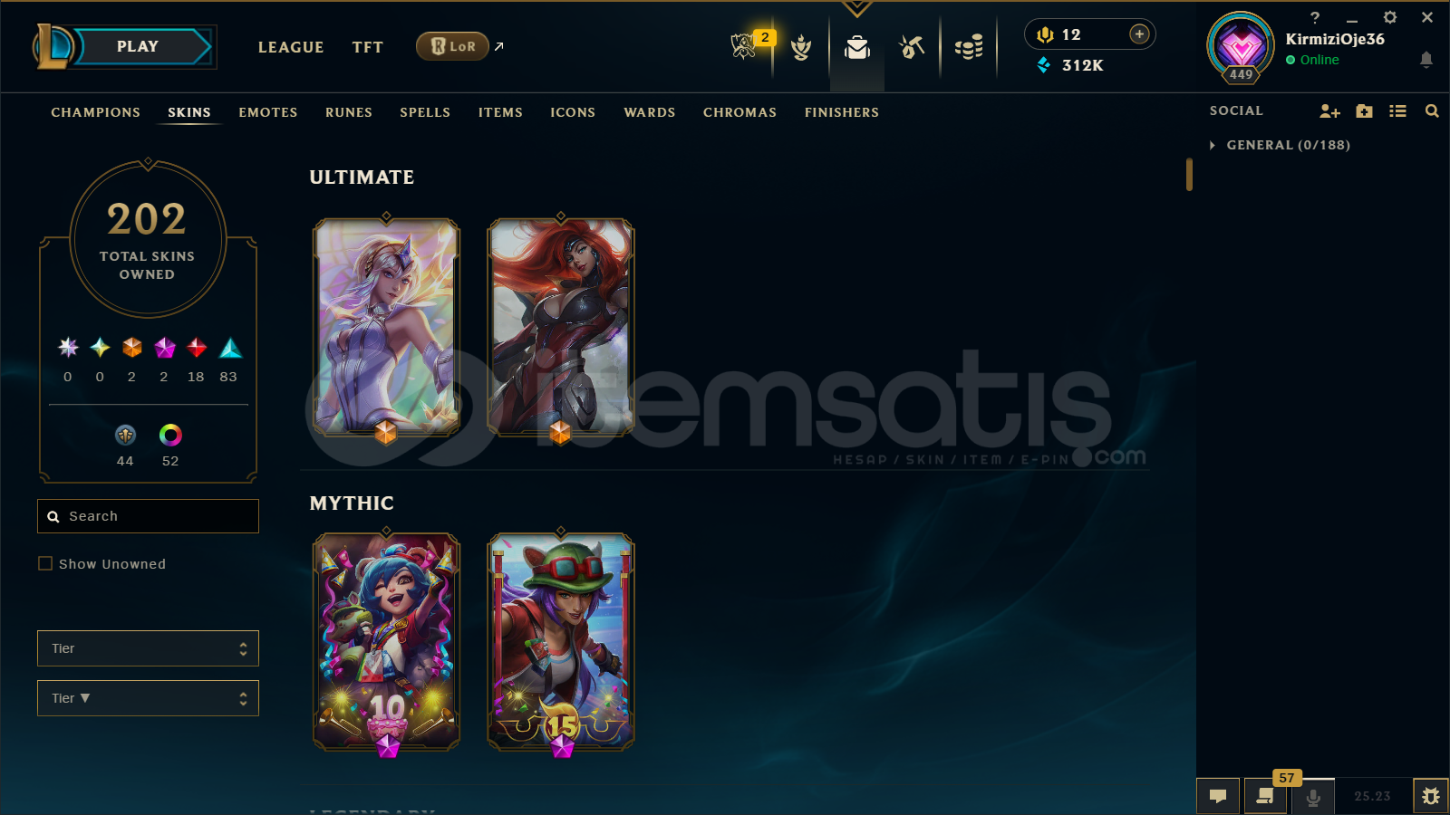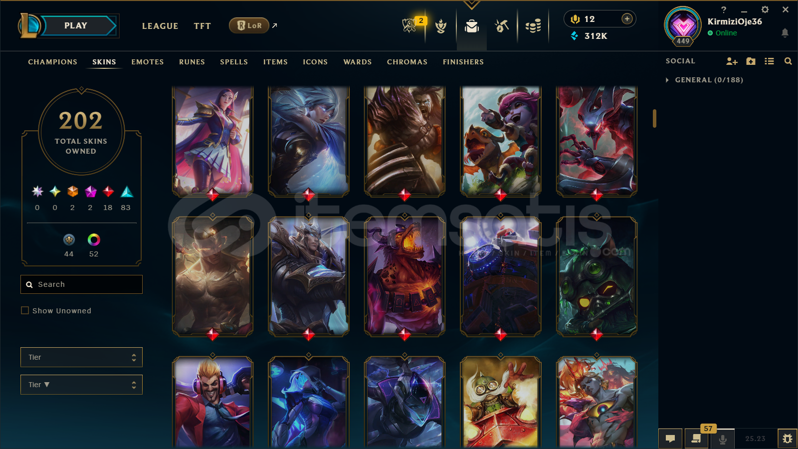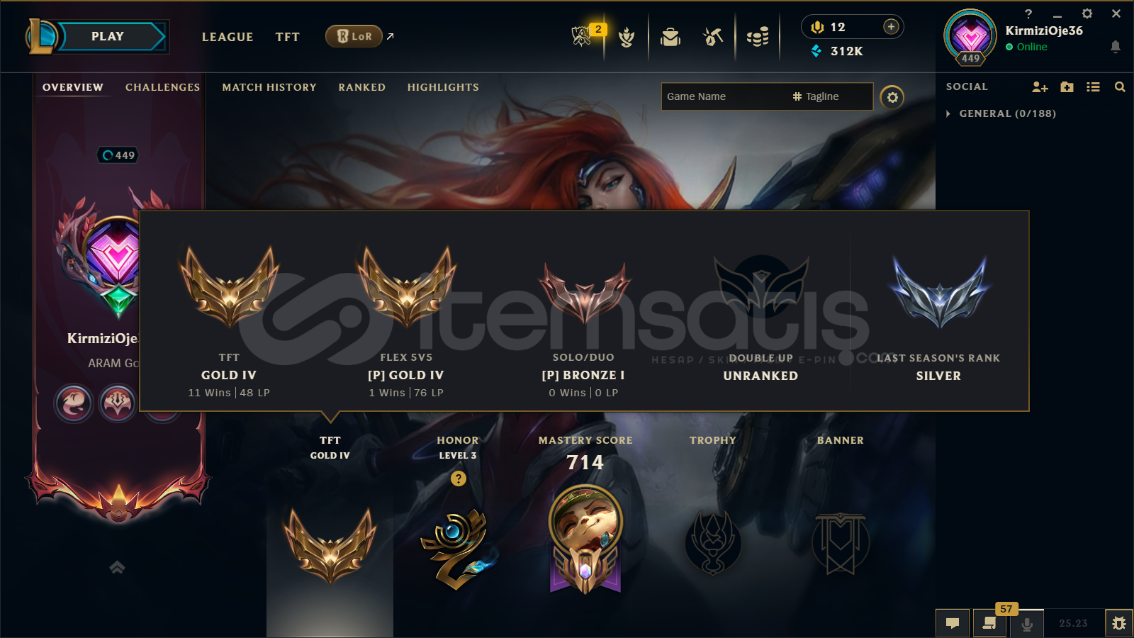 🔷 League of Legends Bilgileri🔹 Sunucu: TR🔹 Level: 449🔹 Sıralama:• Tek/Çift: Bronz 1• Esnek 5v5: Altın 4🔹 Mavi Öz: 312 bin🔹 Şampiyonlar: Hepsi açık🔹 Kostüm Sayısı: 202📊 OP.GG Profili : https://op.gg/tr/lol/summoners/TR/KirmiziOje36-3TR1