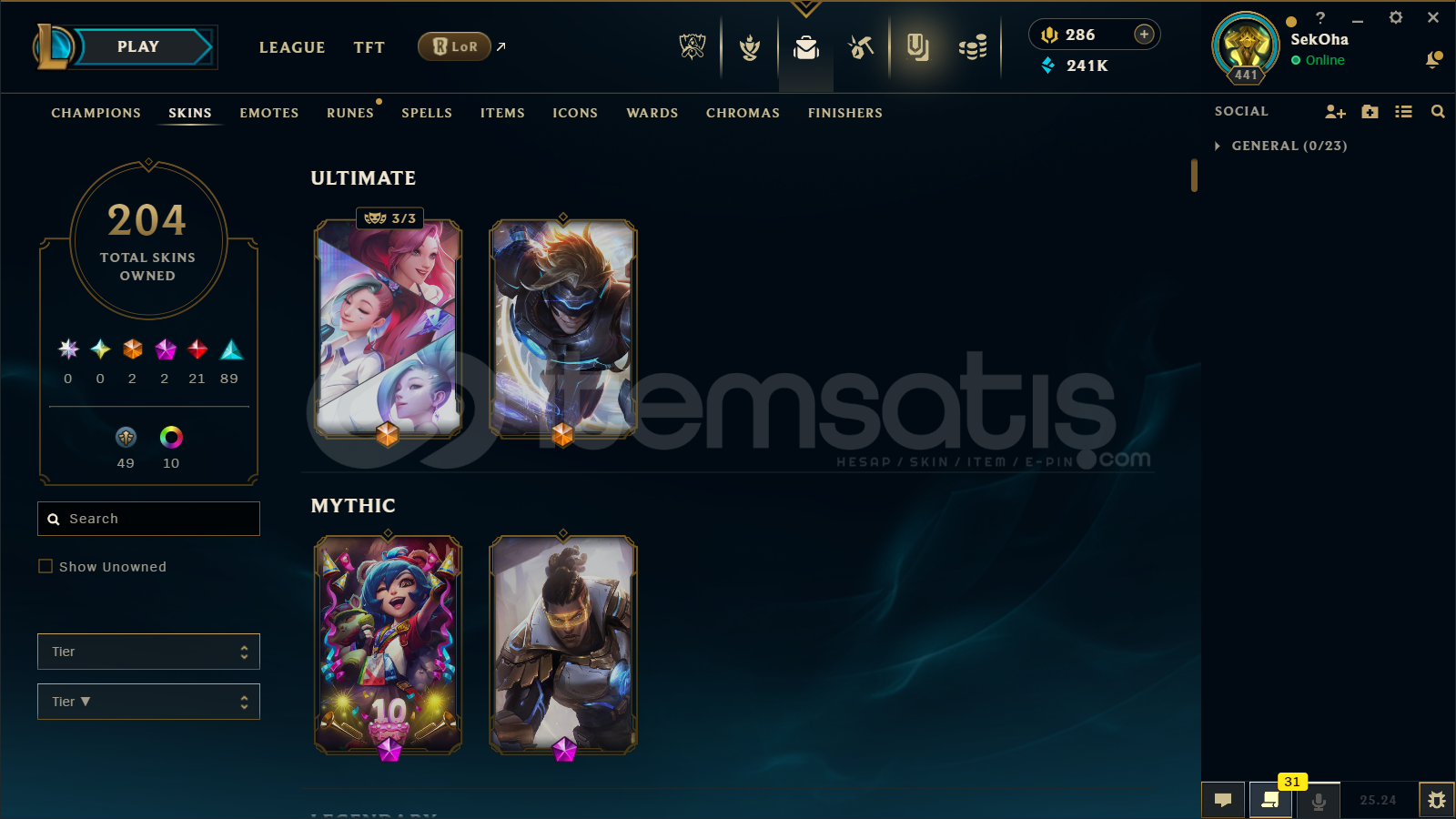 🔷 League of Legends Bilgileri🔹 Sunucu: TR🔹 Level: 441🔹 Sıralama:• Tek/Çift: Unranked• Esnek 5v5: Unranked🔹 Mavi Öz: 241 bin🔹 Şampiyon Sayısı : Hepsi açık🔹 Kostüm Sayısı: 204📊 OP.GG Profili : https://op.gg/tr/lol/summoners/TR/SekOha-TR1✅ Hesaplarımın Tamamen ArkasındayımPiyasa...