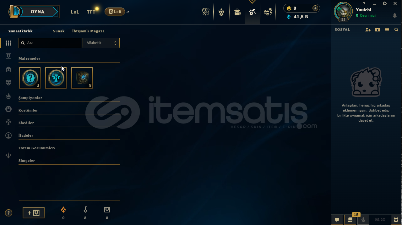 HESAP FRESH(İÇİNDE AÇILMIŞ SKİN YOKTUR).HESAP 21 LEVELHESAPTA 41.5B ÖZ BULUNMAKTADIR.HESABIN TÜM BİLGİLERİ DEĞİŞMEKTEDİR.TR SUNUCU VE HANDMADE KASILMIŞTIR.