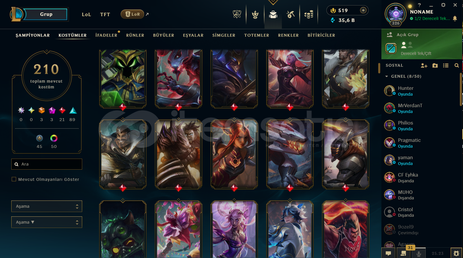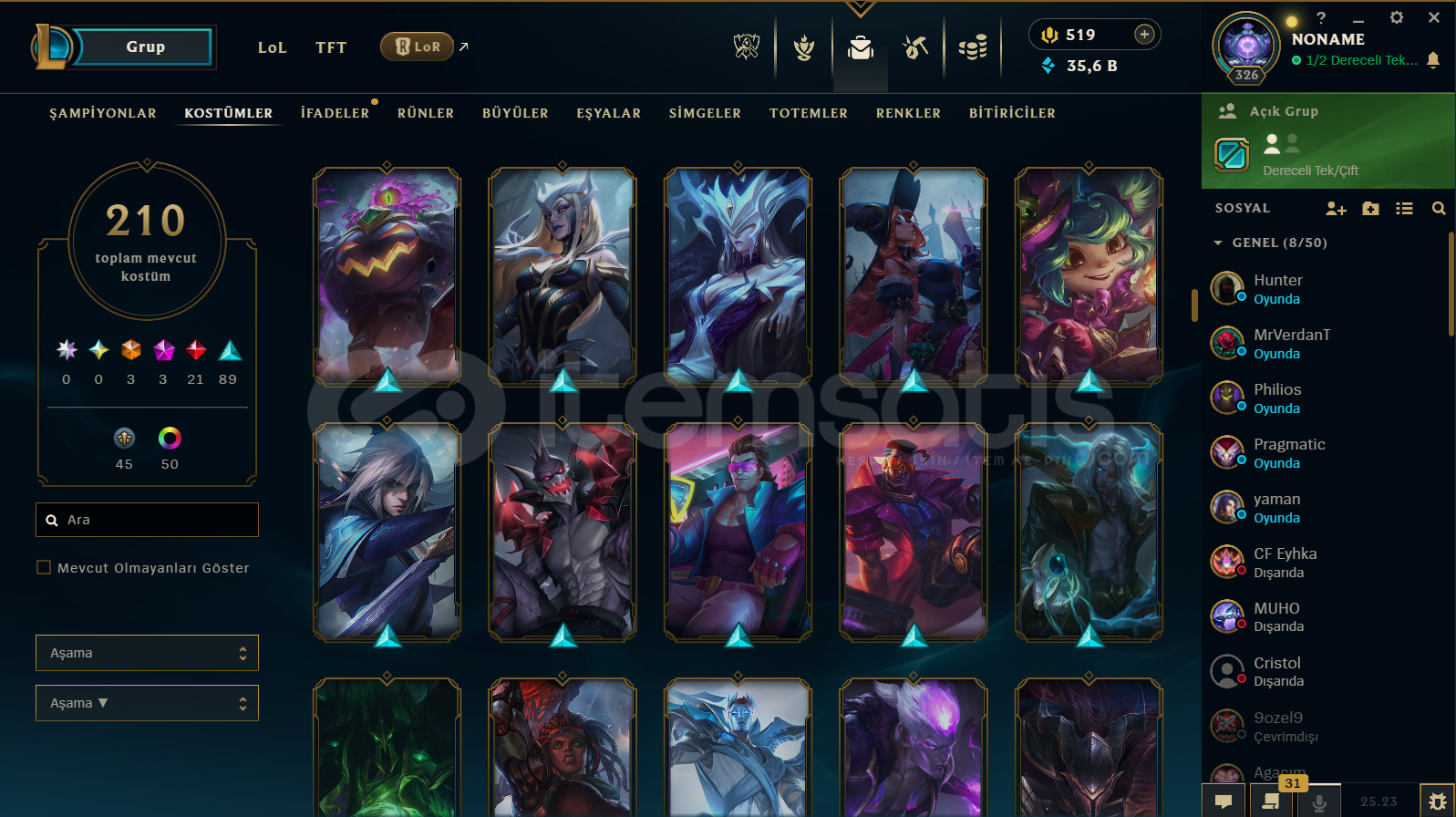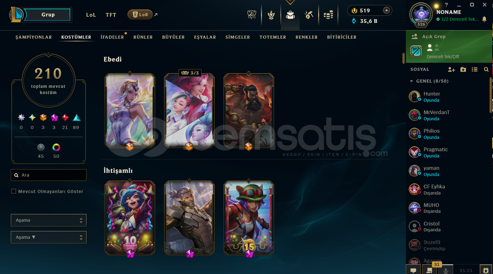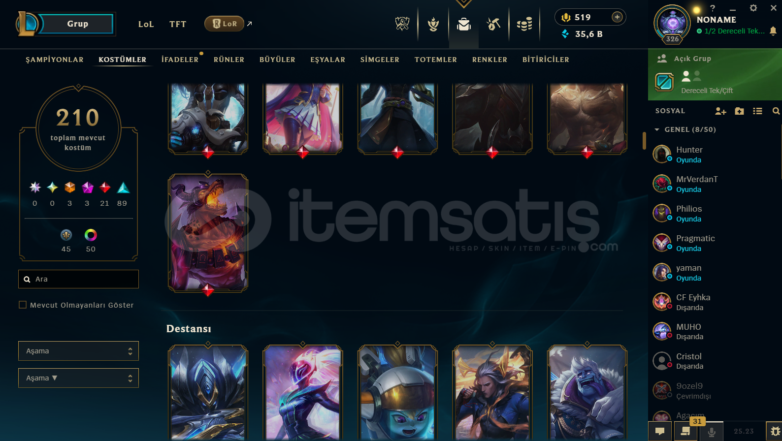 ZÜMRÜT 4 YENİ 5 MAÇ ATILDI ELO YÜKSEK FAZLA LP GELİYOR 210 TANE BİR TON DEĞERLİ KOSTÜME SAHİP FULL HERO KAÇMAZ BU HESAP