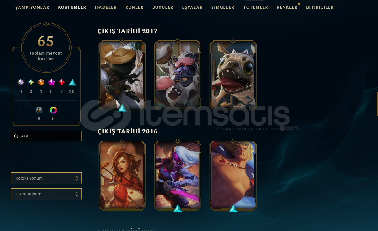 TR SİLVER 210 LEVEL 70 SKİNLİ LOL HESABIM VE VALO HESABIM YKSYE HAZIRLANIŞIM DOLAYISI İLE SATILIKTIR.HESAPDAKİ DEĞERLİ SKİNLER FOTOĞRAFTA EKLİDİR, . EKSTRA OLARAK AÇILMAYI BEKLEYEN ARCANE:SAVAŞÇI Vİ, SAVAŞ AKADEMİSİ EZREAL,UZAY SERÜVENİ KAYN GİBİ SKİNLER DE MEVCUTTUR. BAZI ŞAMPİYONLARIN SKİNLERİNİN RENK PAKETLERİ DE MEVCUTTAKTİR SEVİY...