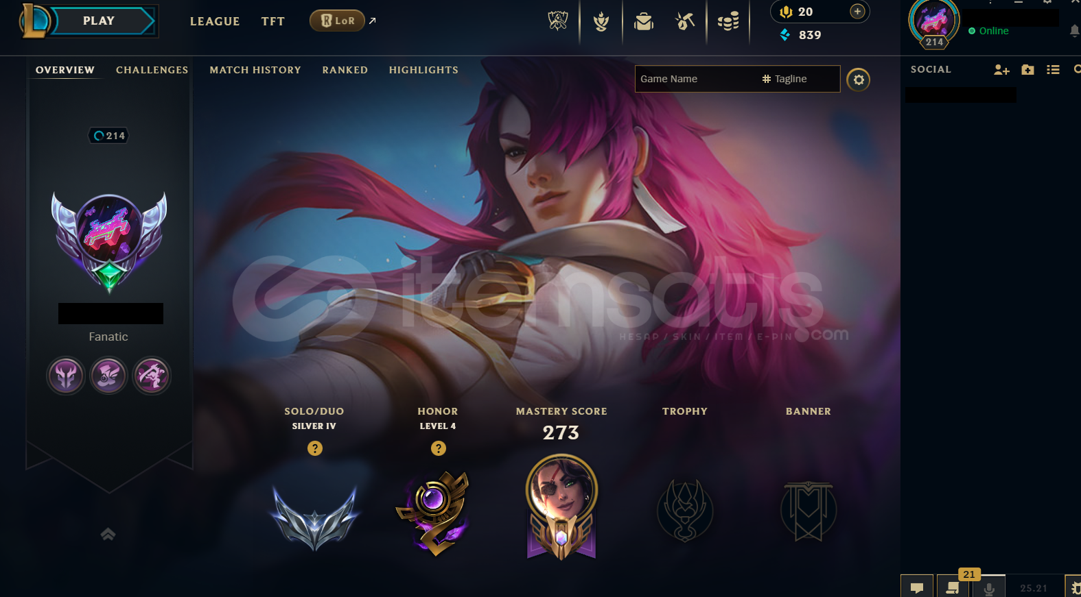 Hesap TR Tek/Çift Silver 4 - 33 Lp - Esnek Bronz 2 - 84 Lp TR LoL Hesabıdır.
