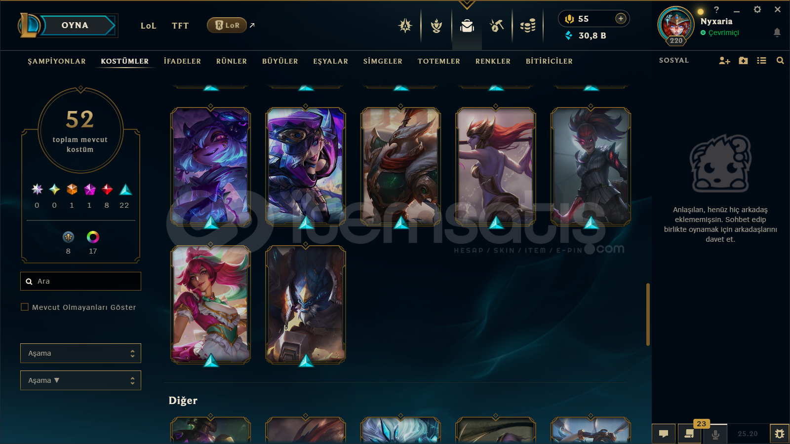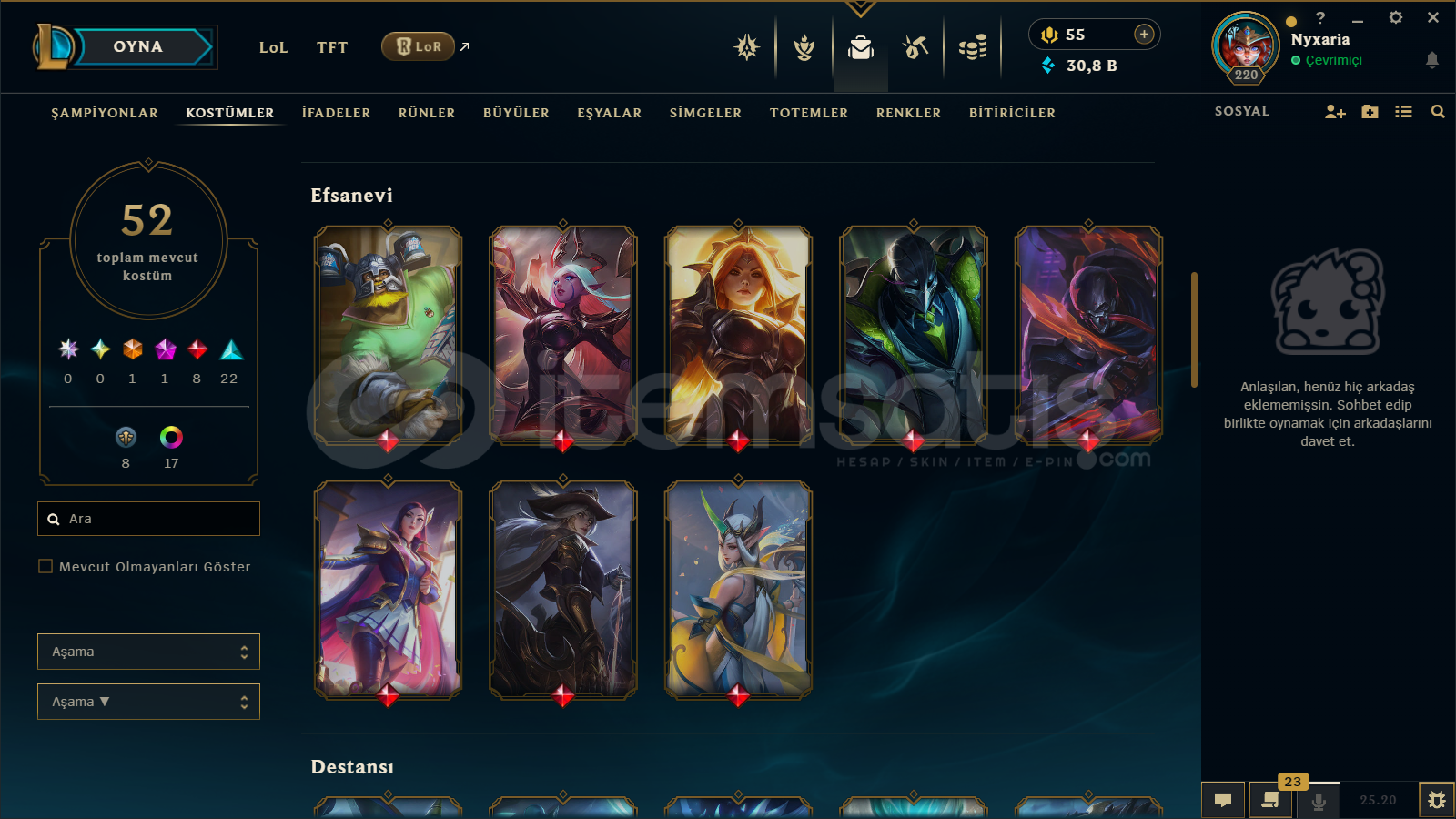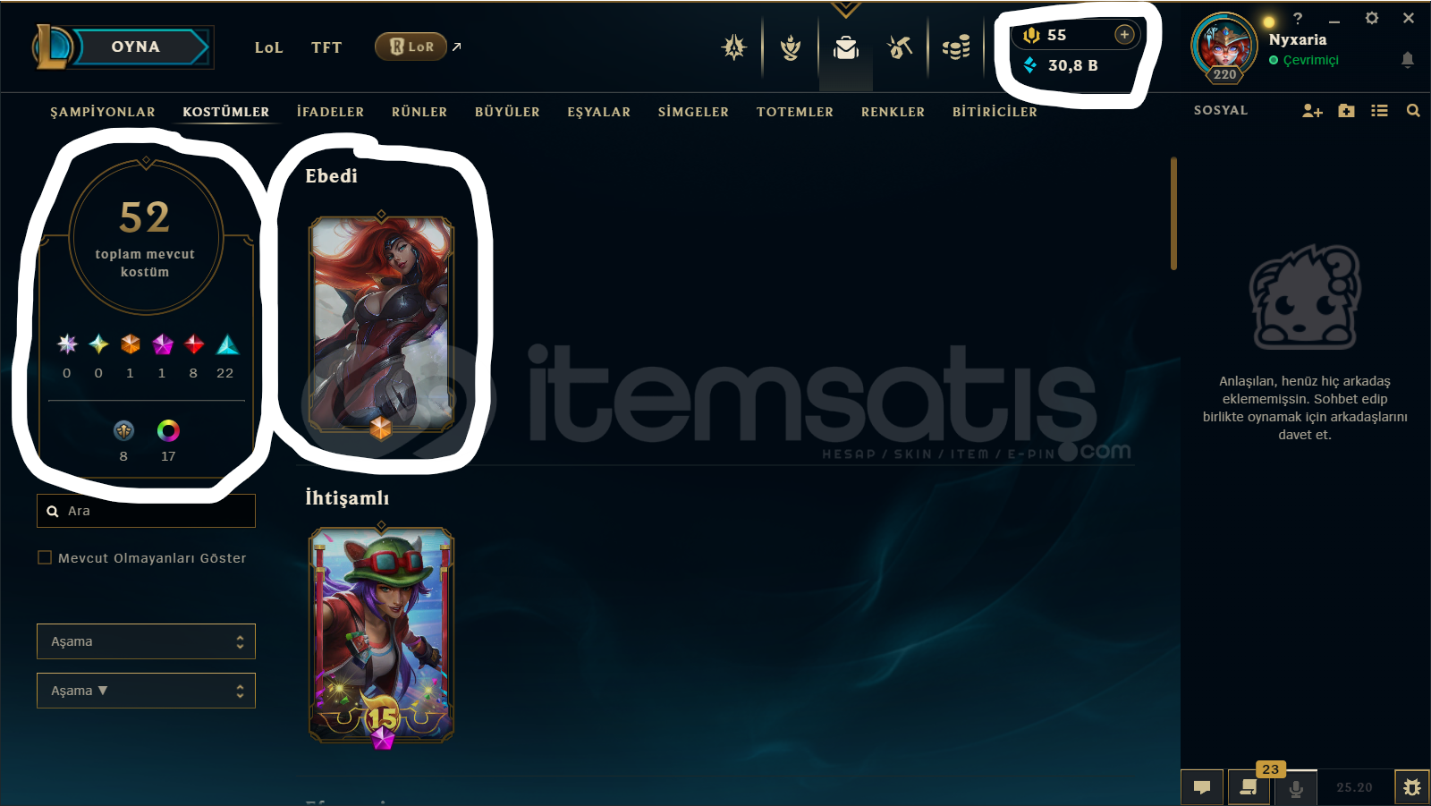 Aktif olmasam bile otomatik teslimat yapılmaktadır.En hızlı ve güvenilir alışveriş yapabileceğiniz mağazaya hoşgeldiniz :+4500 Başarılı satış güvencesiyle..MAİL : KENDİ MAİLİNİZE DEVREDİLECEKRANK : TEK ÇİFT ALTIN III / ESNEK ALTIN I / TFT G- BRONZ IVHERO : 142/171SKIN : 52SİMGE SAYISI : 133MAVİ ÖZ :&nb...