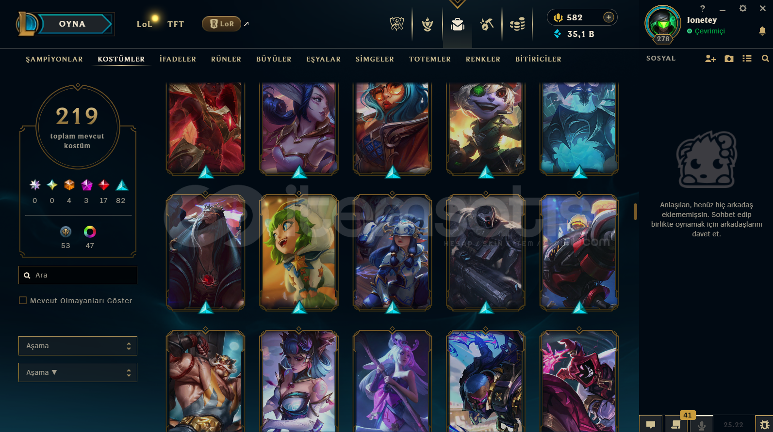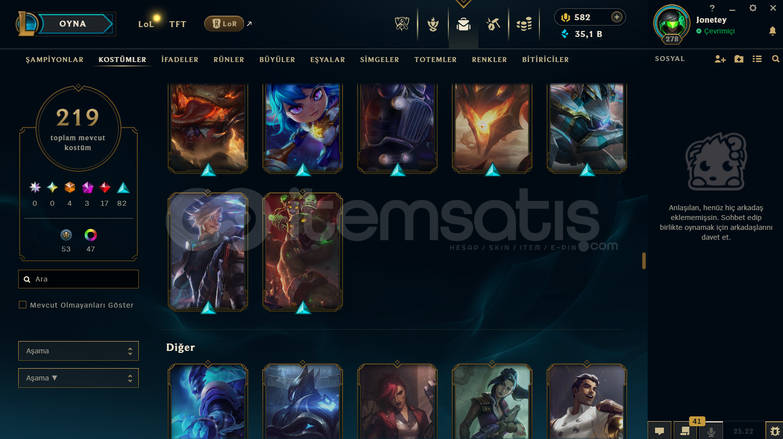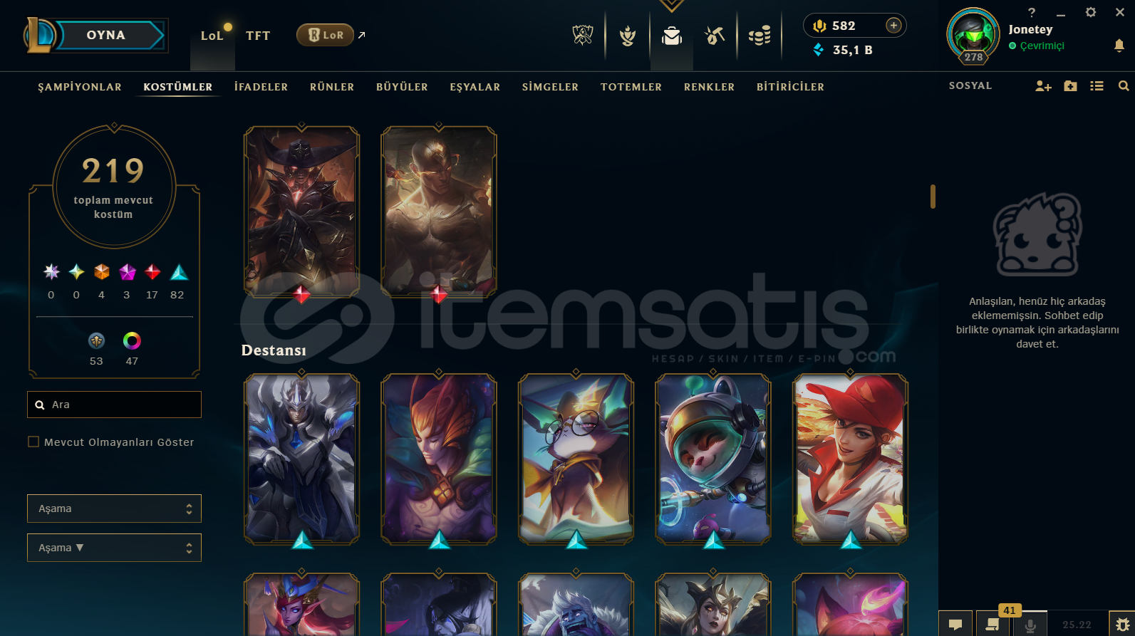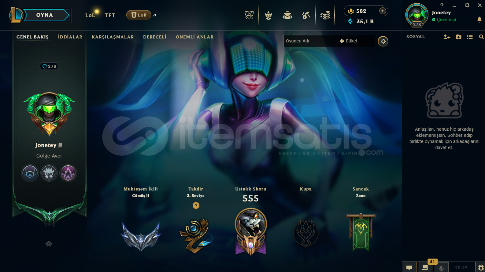 SUNUCU:TRRANK: BRONZ IILEVEL:278TOPLAM LOLDE:221 SKİN4 EBEDİ3 İHTİŞAMLI17 EFSANEVİ82 DESTANSI53 HATIRA47 RENK PAKETİTOPLAM AÇIK ŞAMPİYONLAR:FULLSATIN ALINDIKTAN SONRA MAİL VE ŞİFRE DEĞİŞİMİ TARAFINIZA YAPILACAKTIR.🧨 Ürün AçıklamasıErişim ve E-Posta BilgileriSatın alma işlemi tamamlandıktan sonra tarafınıza kullanıcı adı ve ...