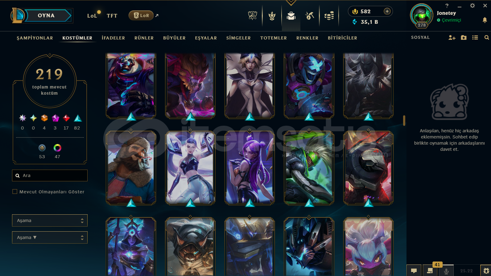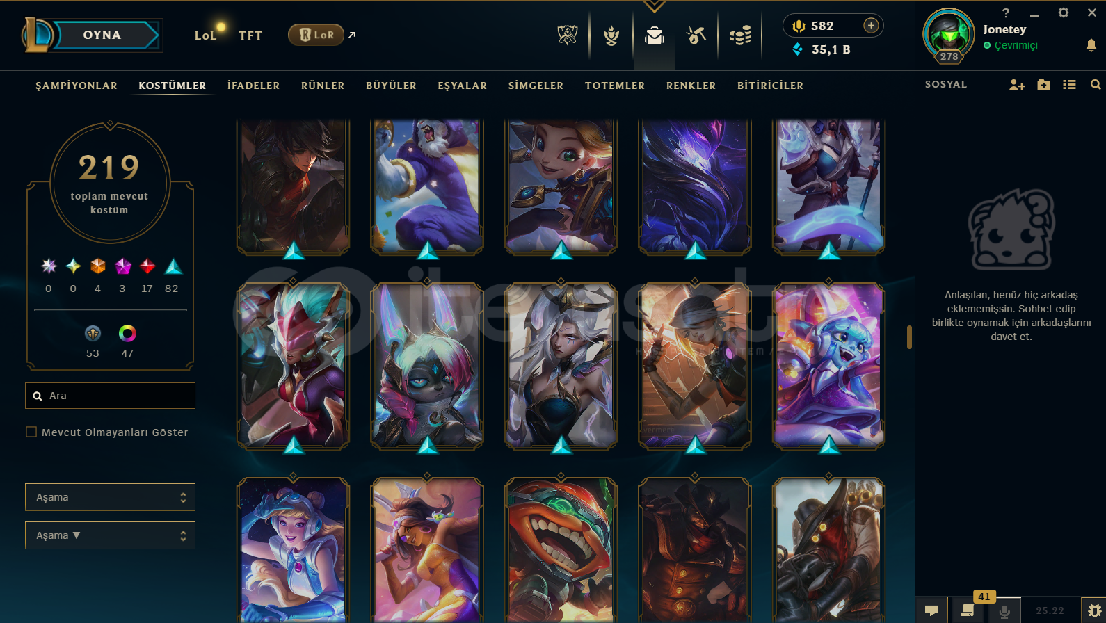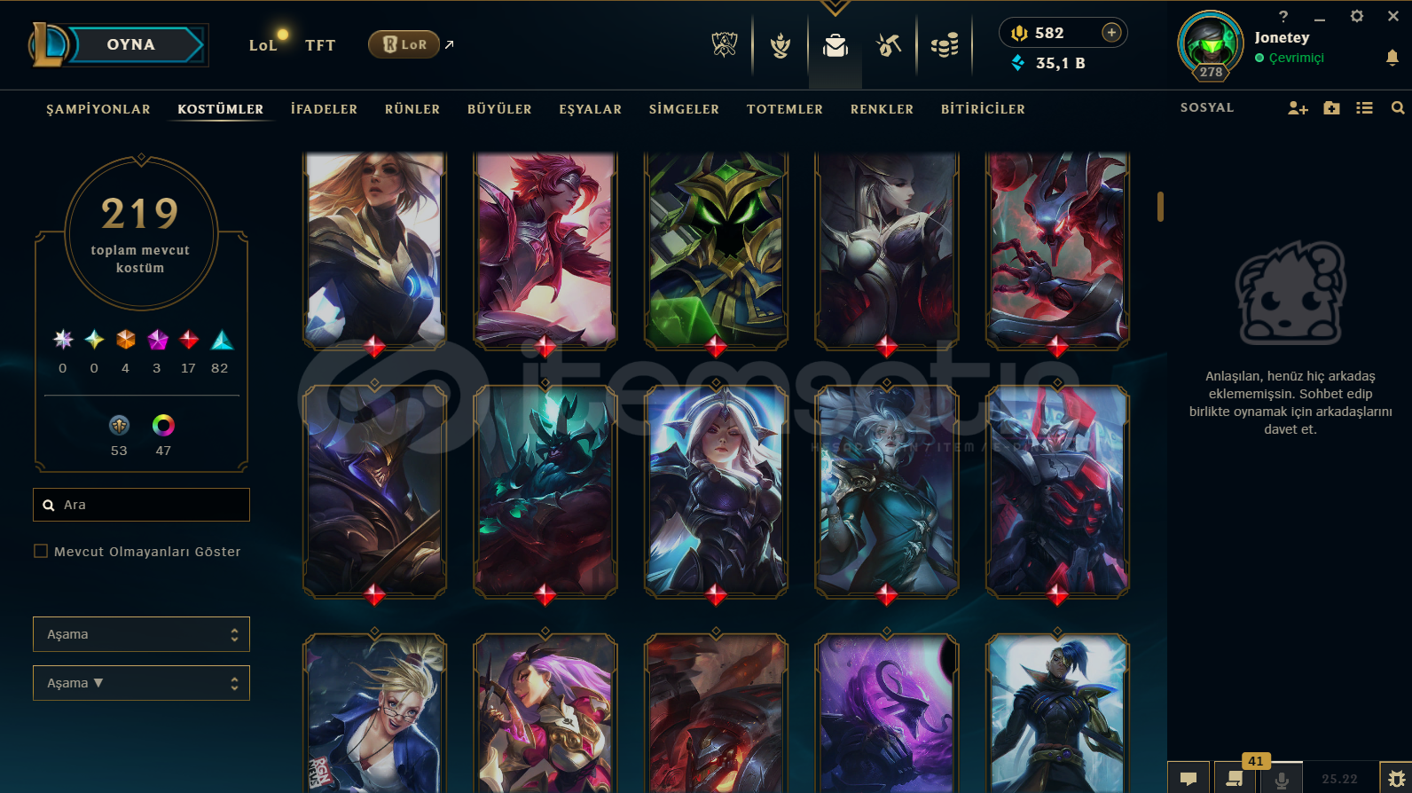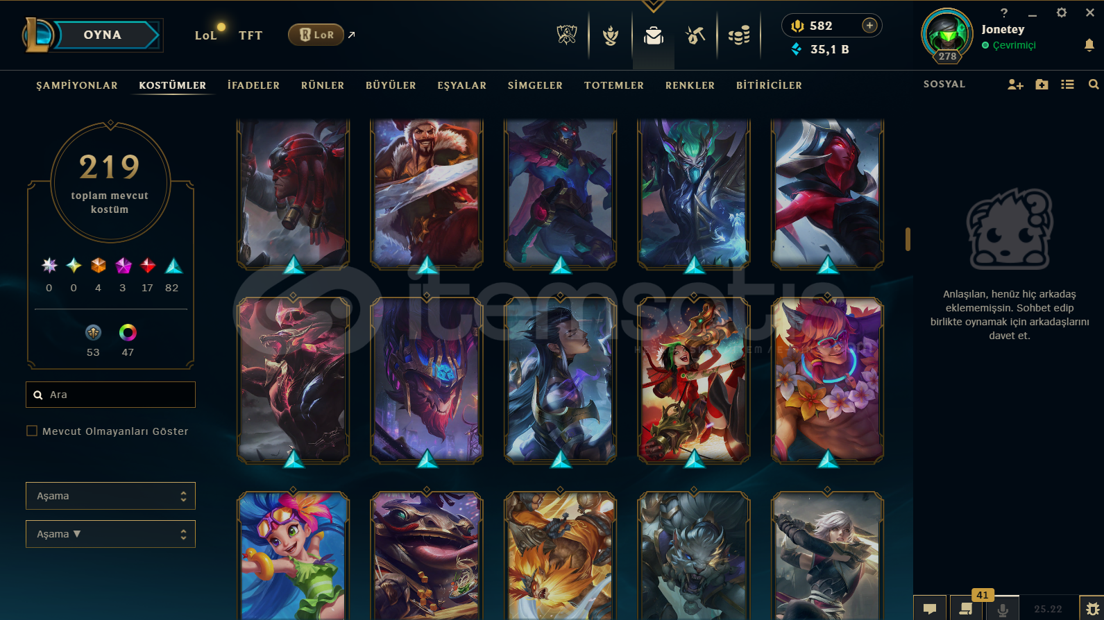SUNUCU:TRRANK: BRONZ IILEVEL:278TOPLAM LOLDE:221 SKİN4 EBEDİ3 İHTİŞAMLI17 EFSANEVİ82 DESTANSI53 HATIRA47 RENK PAKETİTOPLAM AÇIK ŞAMPİYONLAR:FULLSATIN ALINDIKTAN SONRA MAİL VE ŞİFRE DEĞİŞİMİ TARAFINIZA YAPILACAKTIR.🧨 Ürün AçıklamasıErişim ve E-Posta BilgileriSatın alma işlemi tamamlandıktan sonra tarafınıza kullanıcı adı ve ...