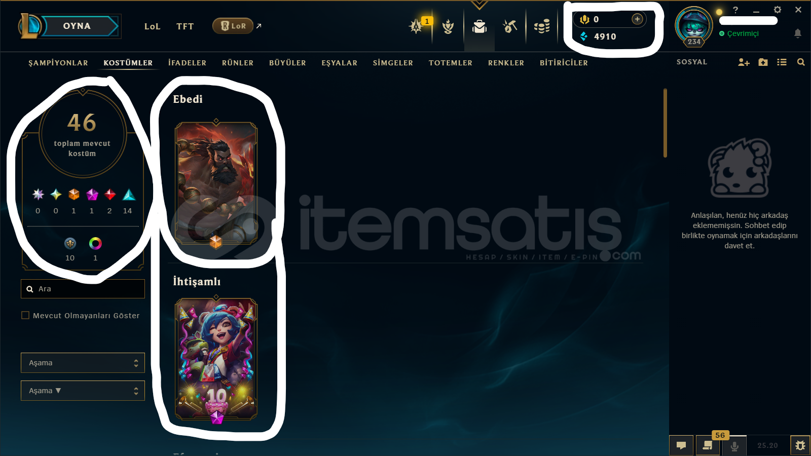 Aktif olmasam bile otomatik teslimat yapılmaktadır.En hızlı ve güvenilir alışveriş yapabileceğiniz mağazaya hoşgeldiniz :+4500 Başarılı satış güvencesiyle..MAİL : KENDİ MAİLİNİZE DEVREDİLECEKRANK : TEK ÇİFT DERECESİZ / ESNEK DERECESİZHERO : 106SKIN : 46SİMGE SAYISI : 158MAVİ ÖZ : 4910 /&...