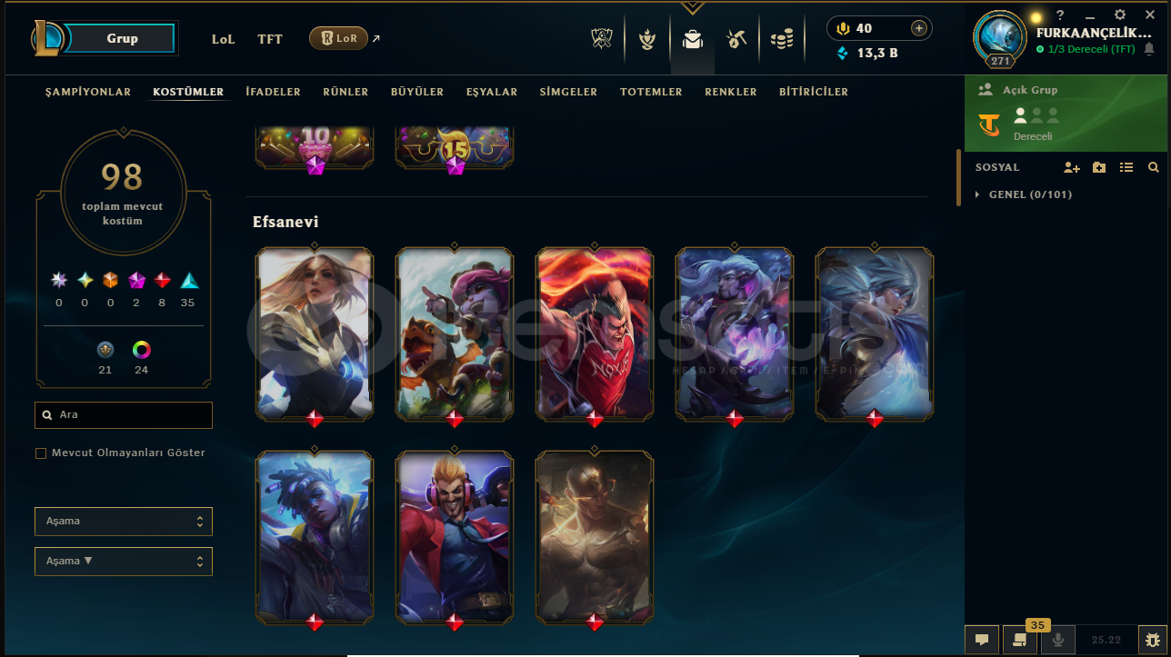 TR - 271 lvl - 98 kostüm - fulle yakın champ